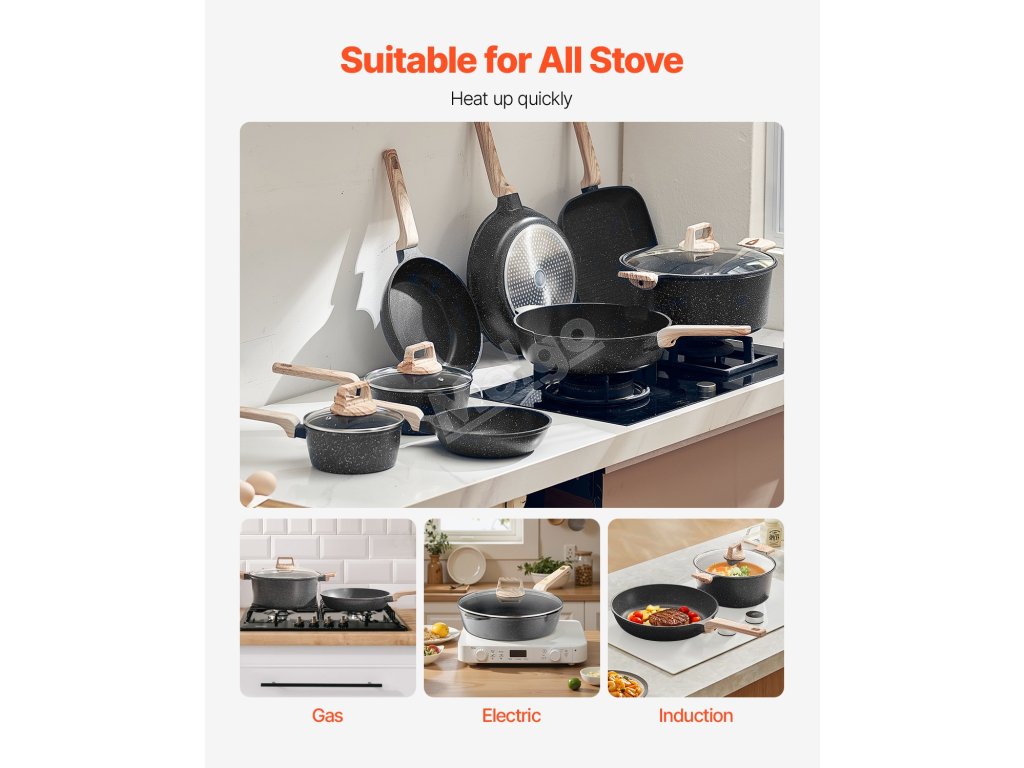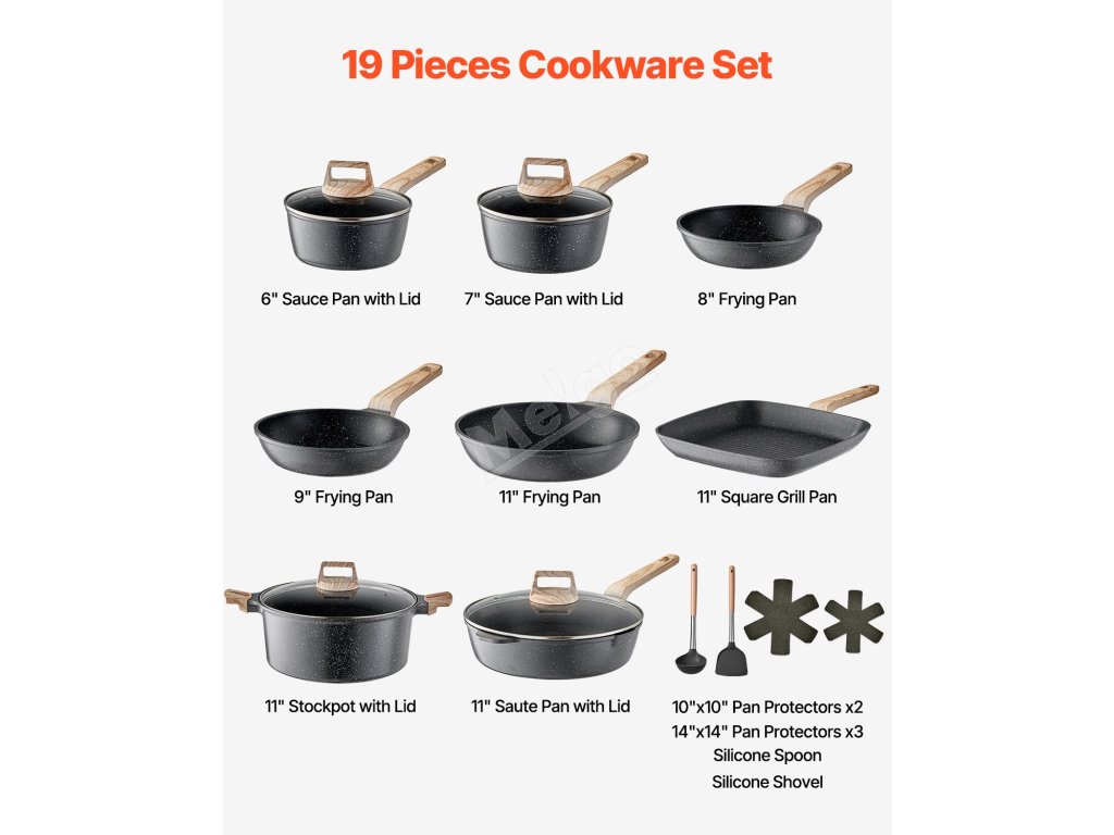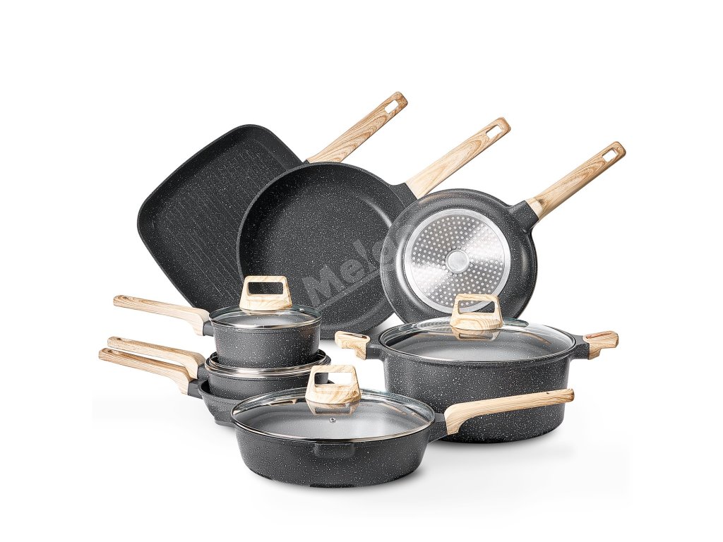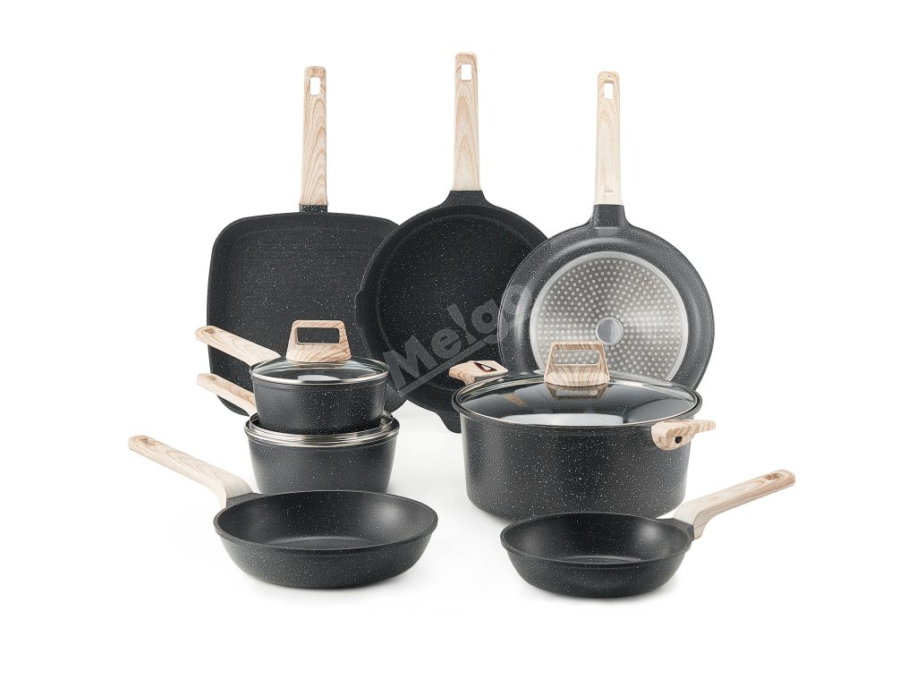 Sada 19-dílná hrnců a pánví, indukční, granit, s pokličkami