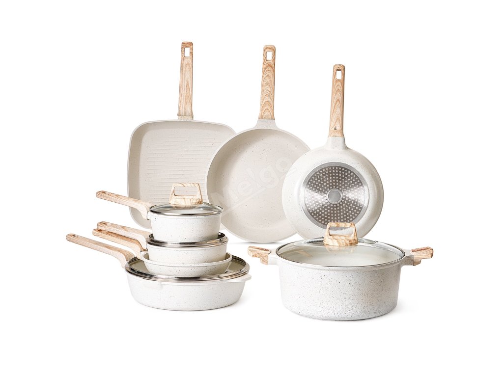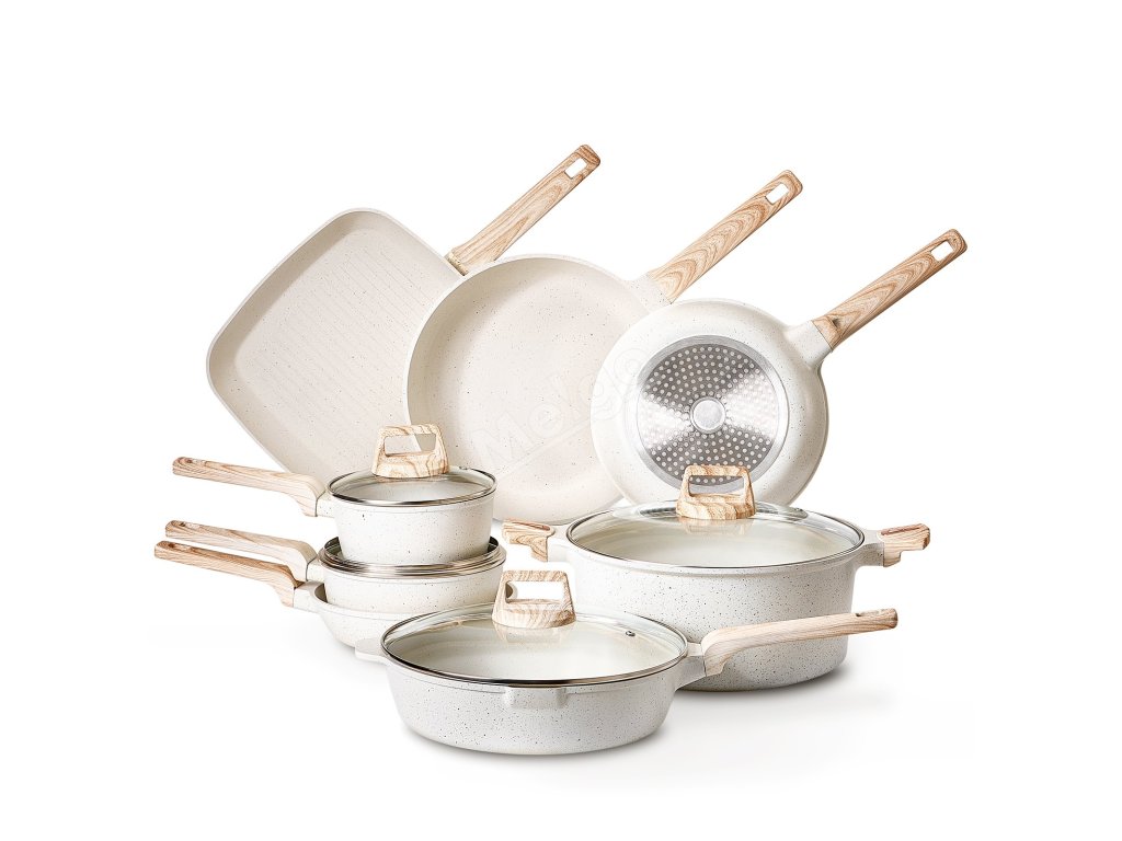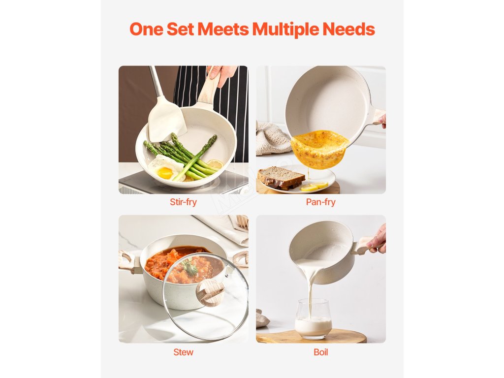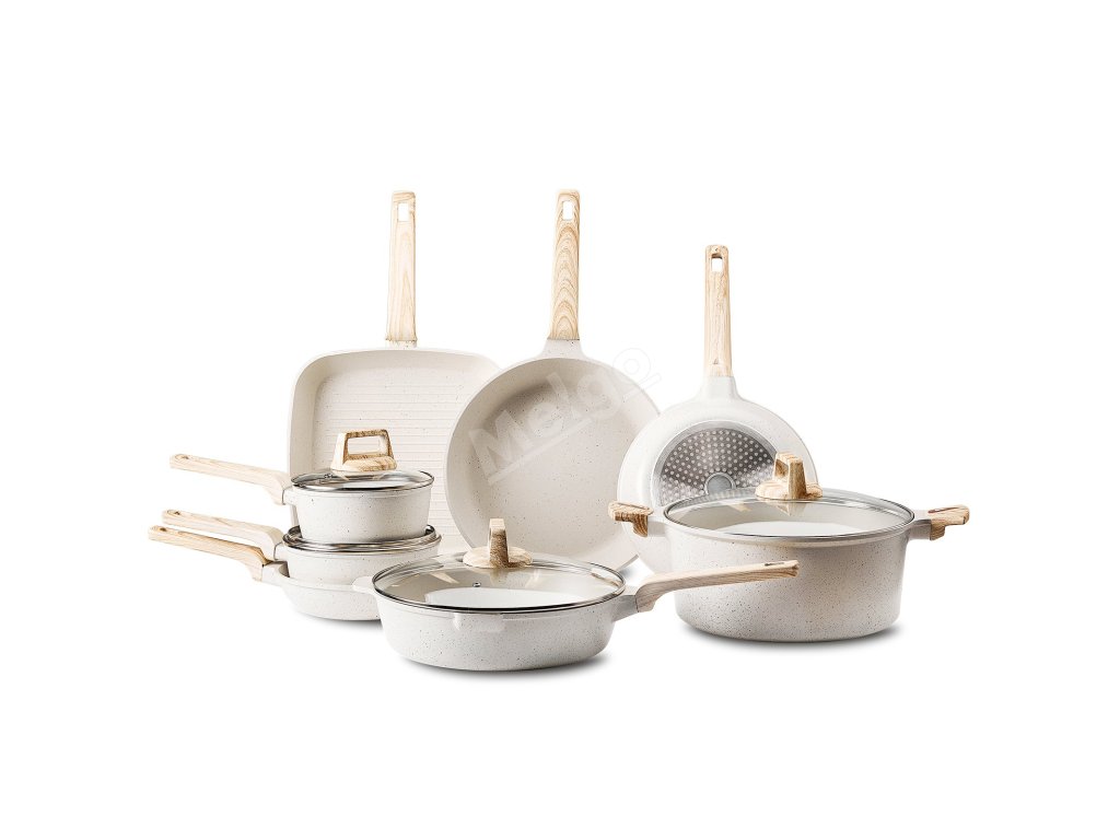 Stylový a moderní design integrovaného kuchyňského náčiní. Tato všestranná sada nádobí obsahuje různé kusy nádobí, které splní všechny vaše potřeby při vaření.