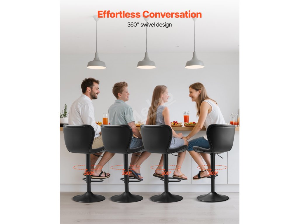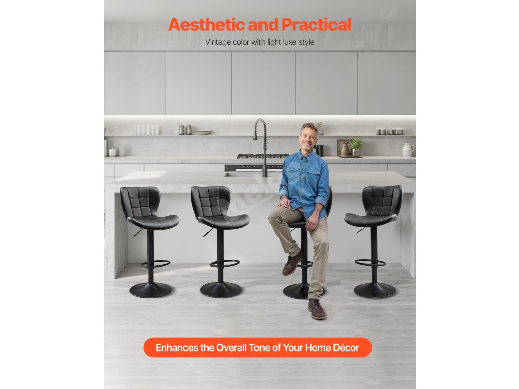Pultová stolička má komerční černou PU kůži a opěradlo s uhlazeným tvarem, který kombinuje moderní a hřejivý styl. Bez námahy se začlení do různých stylů interiéru a pozvedne celkový dojem z prostoru.