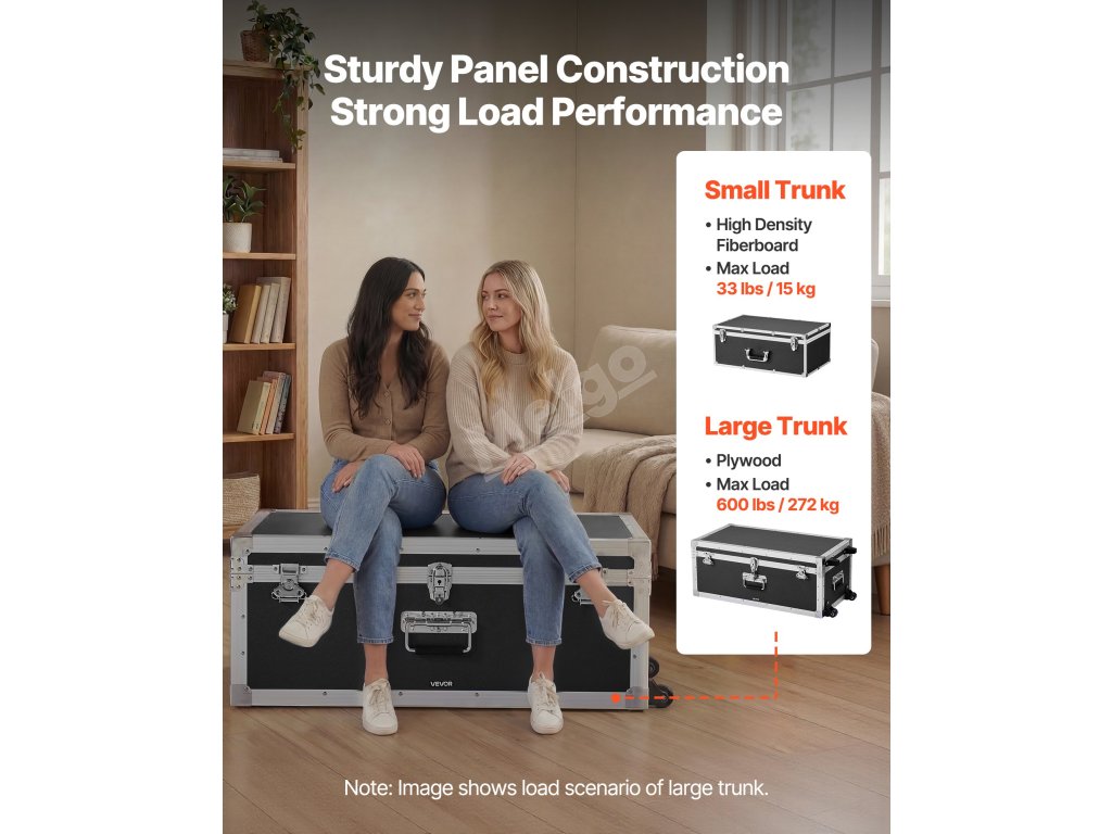 Velký úložný kufr o rozměrech 763 x 392 x 312 mm, malý úložný kufr o rozměrech 600 x 350 x 240 mm. Prostorná přihrádka na oblečení, knihy, školní potřeby a předměty denní potřeby.
