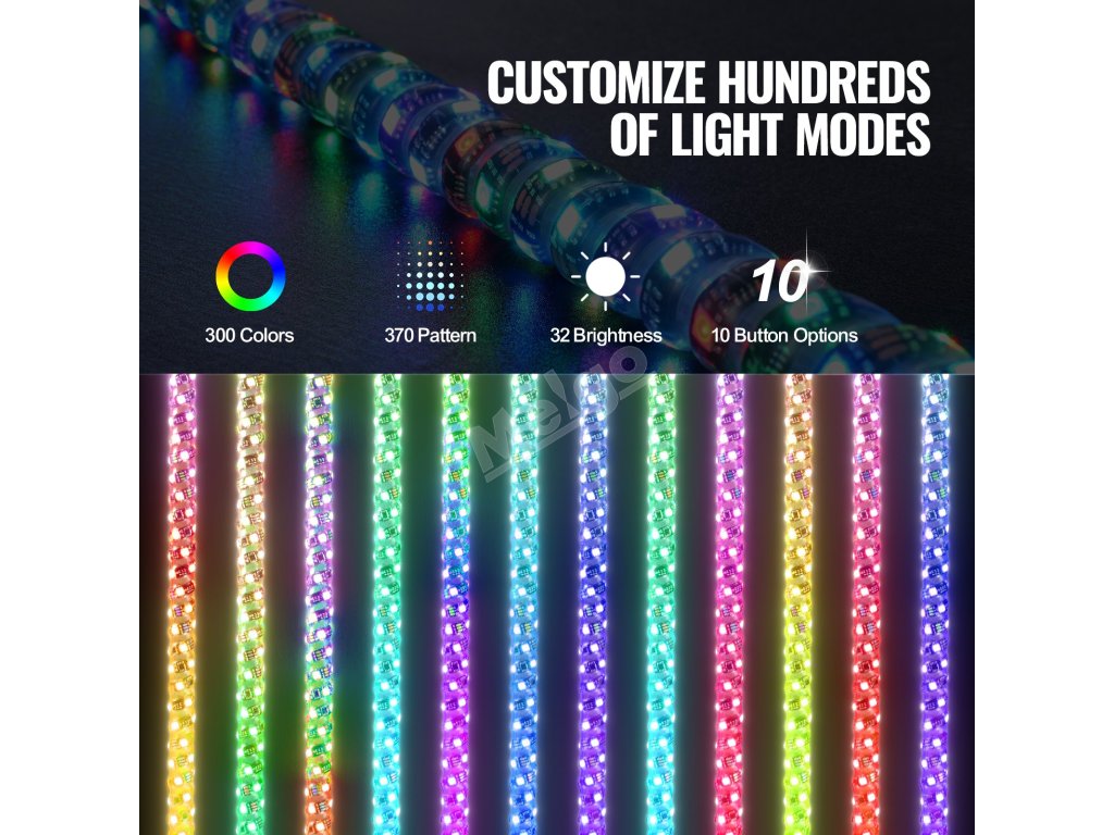 Sada 2 ks 3 ft led pruty s pružinovým základem, 360° rgb, vodotěsné