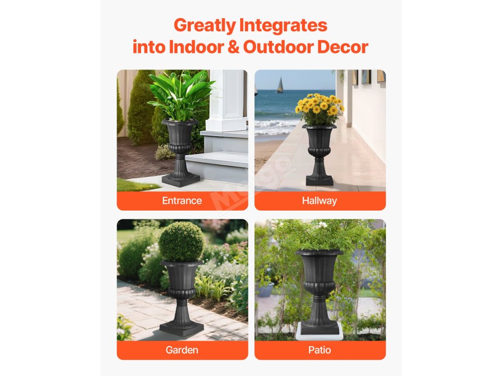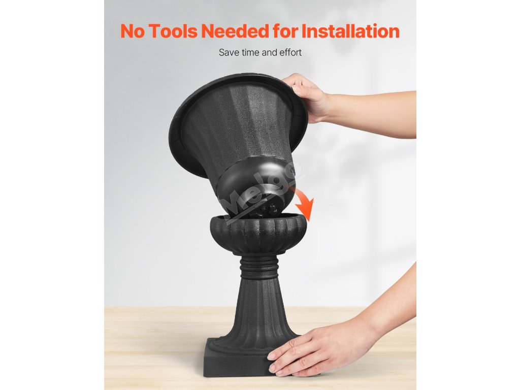 Tento květináč na podstavci je vyroben z vysoce kvalitních materiálů, je lehký, odolný proti prasknutí a navržen tak, aby odolal nepříznivým povětrnostním podmínkám. Ať už svítí slunce, nebo prší, zůstane ve skvělé kondici po dlouhá léta.