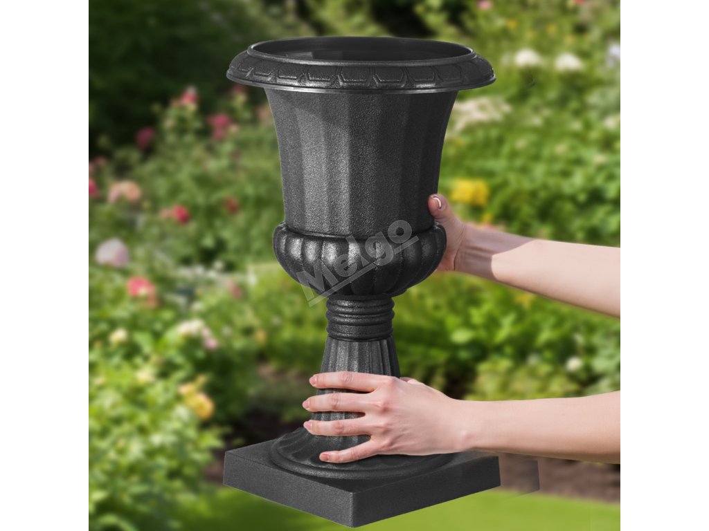 Tento klasický květináč je ideální pro balkony, terasy, zahrady nebo veřejná prostranství. Bez problémů zapadne do jakéhokoli prostředí a s minimálním úsilím vnese do každého prostoru přirozený půvab.