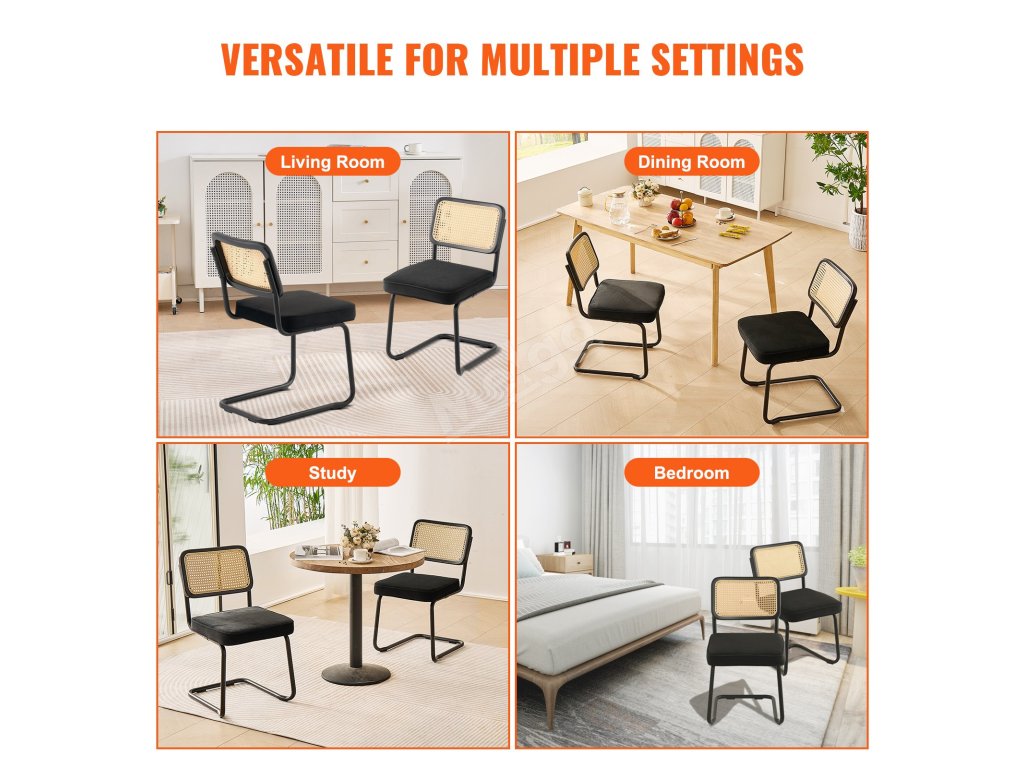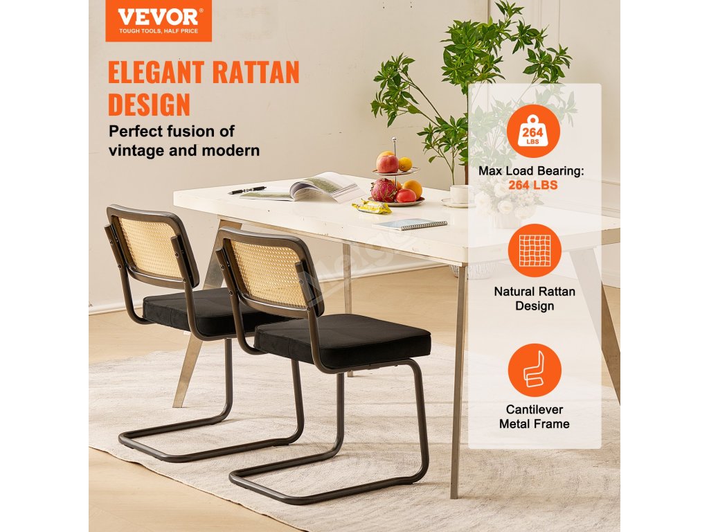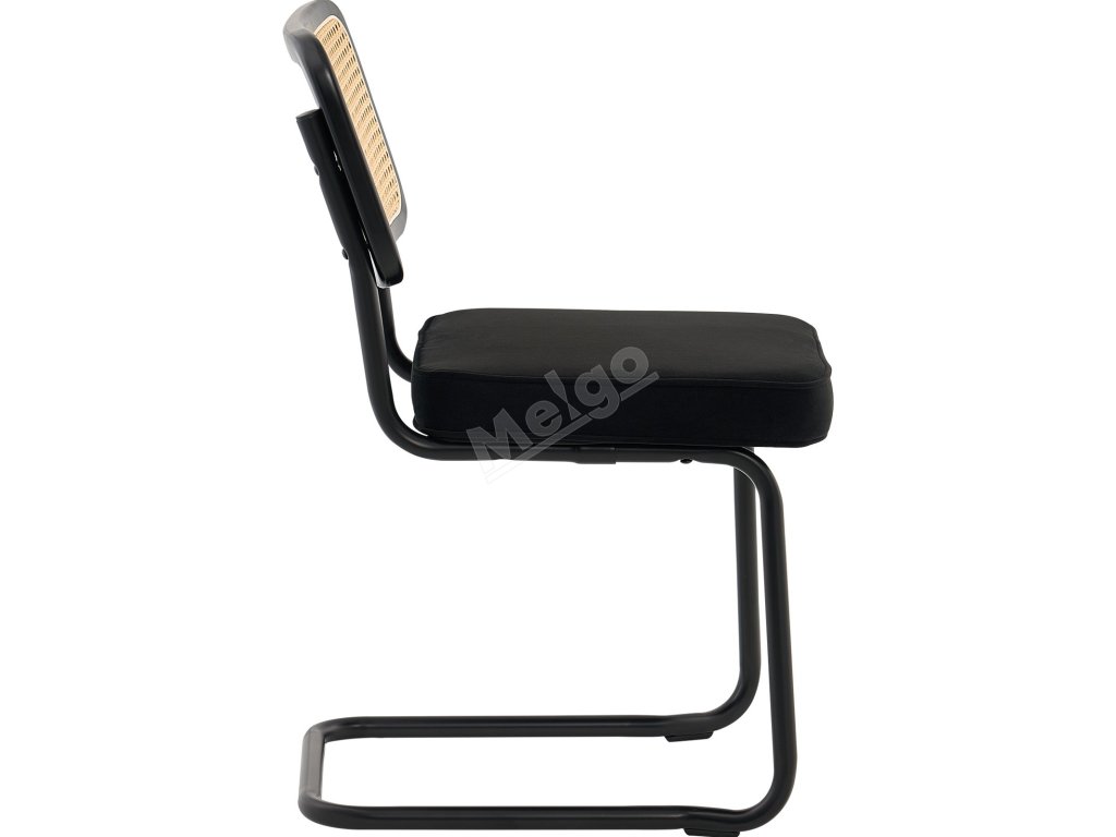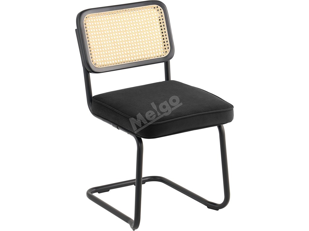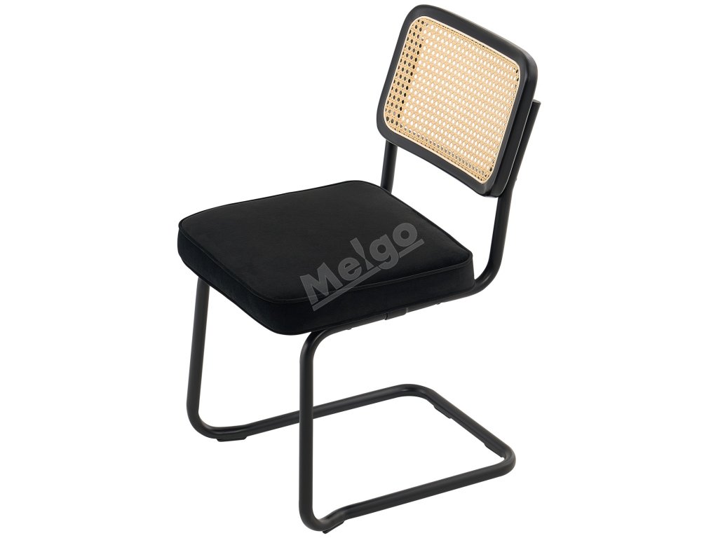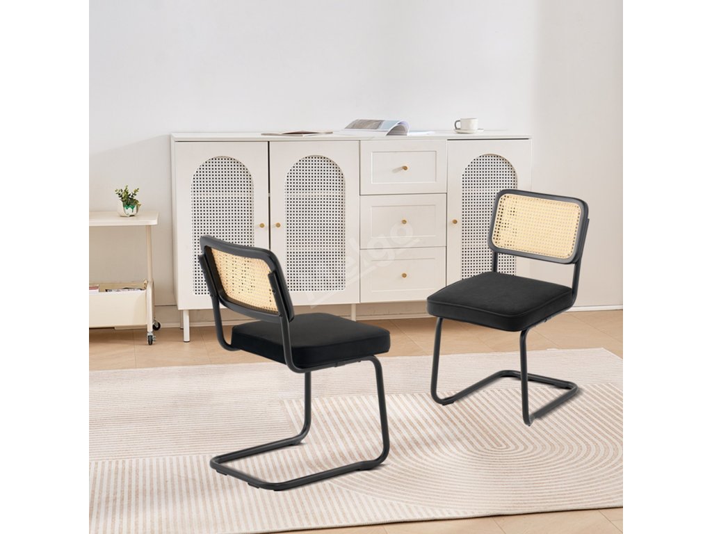 Sada 2 ratanových jídelních židlí čalouněných sametem, černé