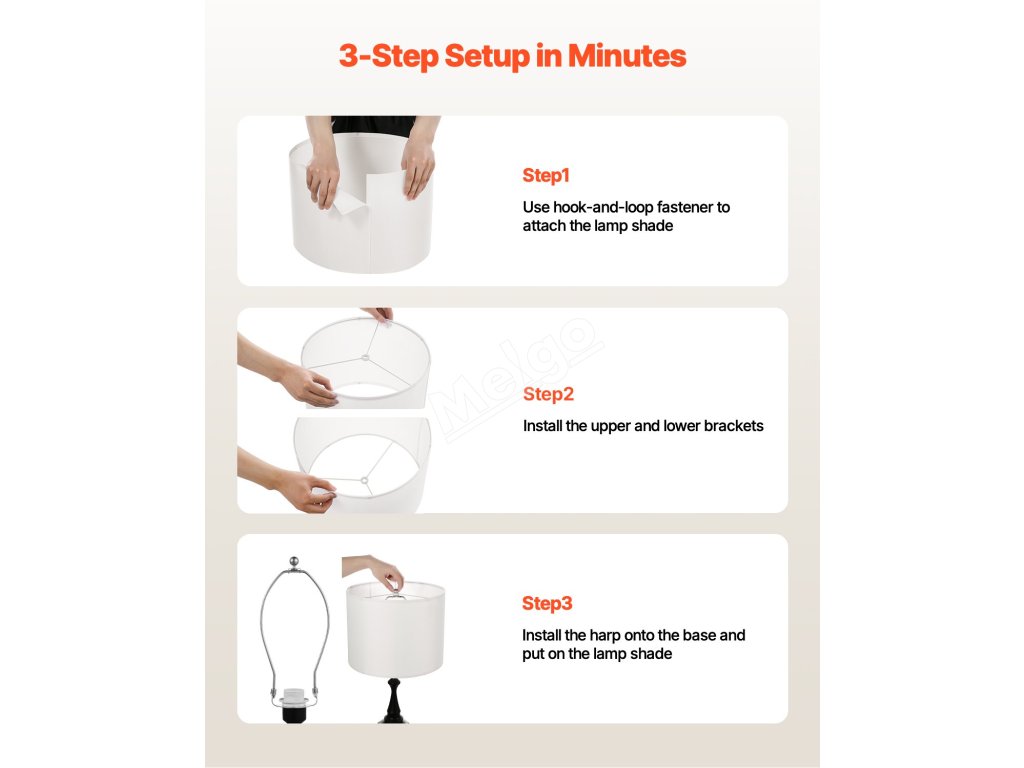 Stínidlo se dodává se speciálním adaptérem a kompletní sadou nářadí, takže jeho instalace je snadná pro každého, včetně seniorů. Je kompatibilní se žárovkami E27 a lze jej nastavit v pouhých třech jednoduchých krocích.