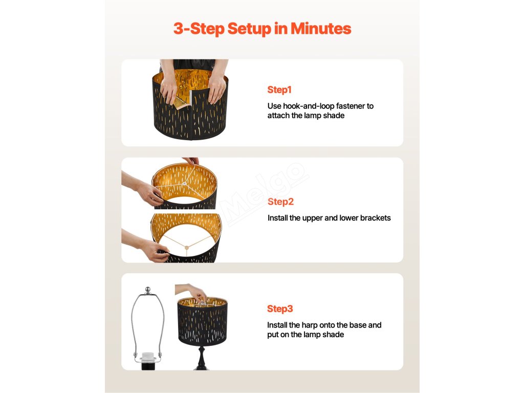 Stínidlo se dodává se speciálním adaptérem a kompletní sadou nářadí, takže jeho instalace je snadná pro každého, včetně seniorů. Je kompatibilní se žárovkami E27 a lze jej nastavit v pouhých třech jednoduchých krocích.