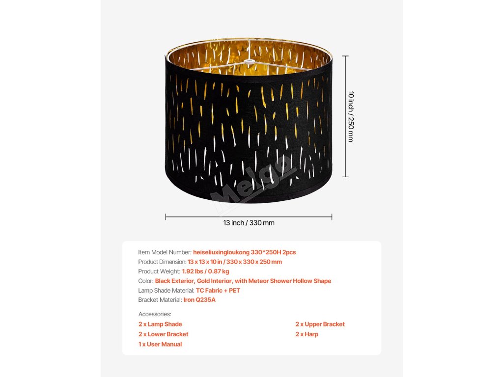 Sada 2 válcových stínidel 13 in × 13 in × 10 in černá s třmenem