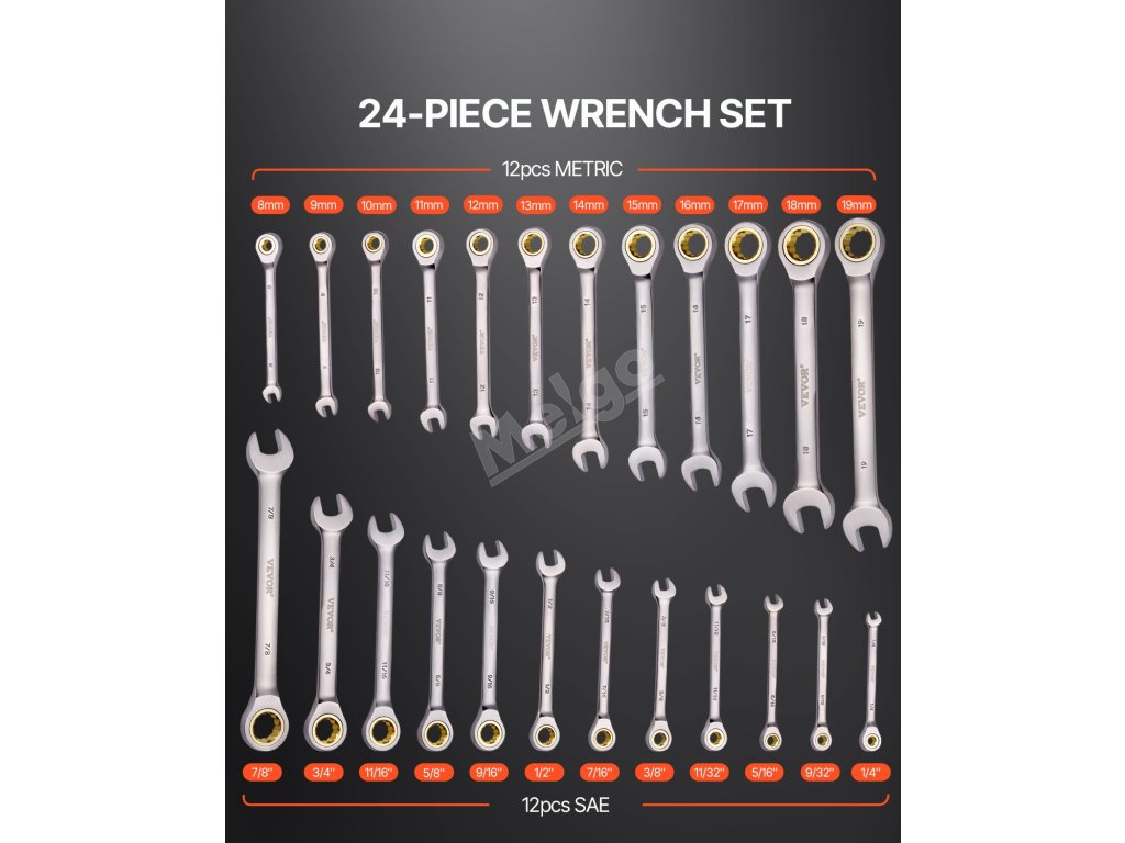 Sada 24 ráčnových očkoplochých klíčů, cr-v, 1/4"-7/8", 8-19 mm