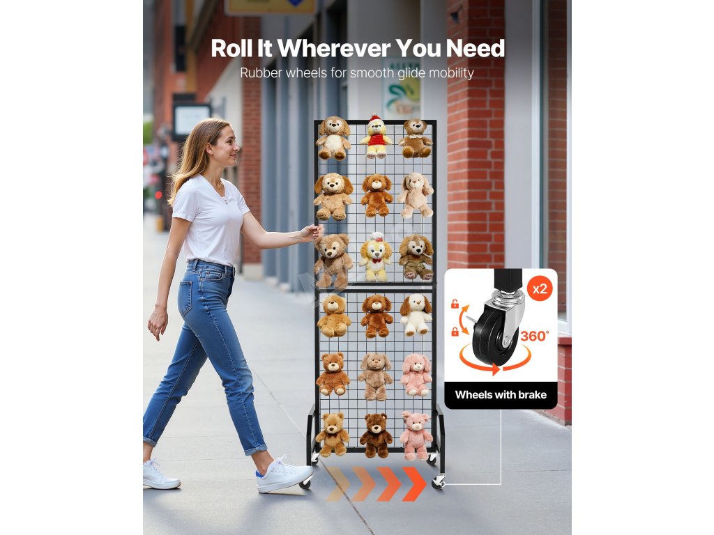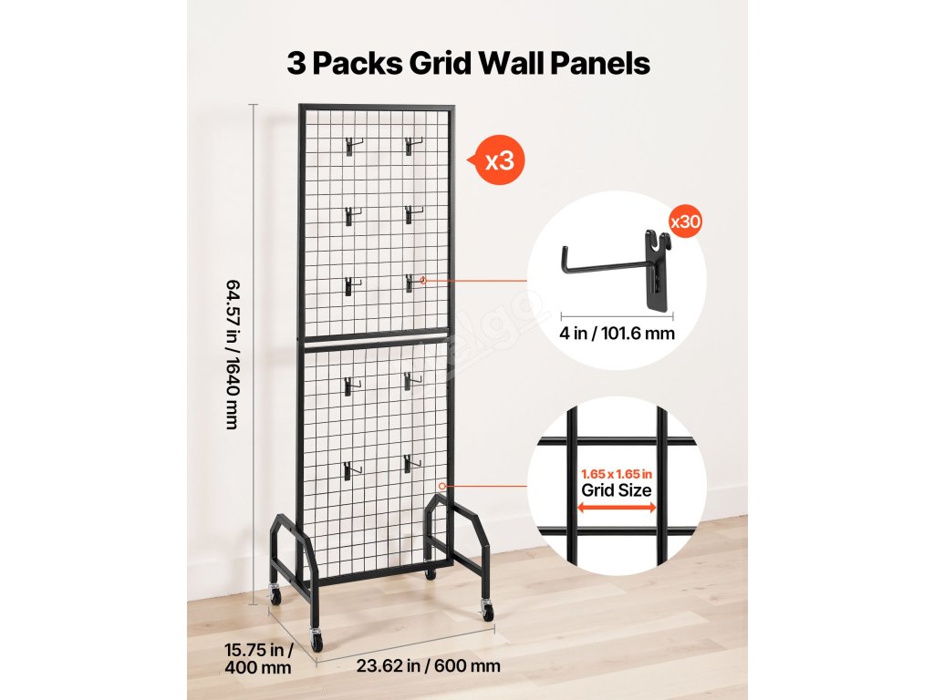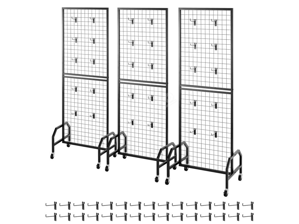 Sada 3 ks drátěných panelů 600×1640mm, 30 háčků, kolečka