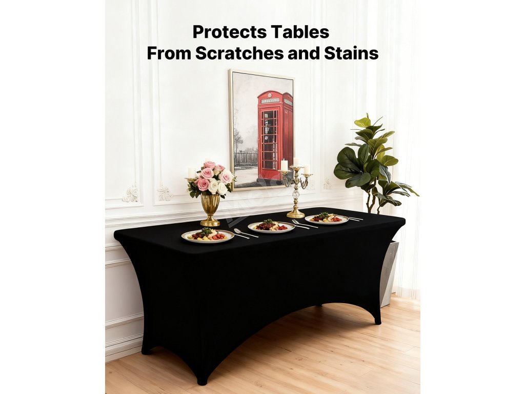 Tento elegantní strečový potah na stůl je vyroben z prvotřídní spandexové tkaniny a vylepší celkový vzhled vašeho stolu. Je ideální pro svatby, promoce, narozeniny a další zvláštní příležitosti a dodá vaší události rafinovaný a stylový nádech.