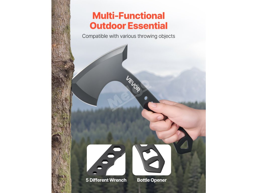 Každá rukojeť sady vrhacích seker má zabudovaný otvírák na láhve a otvor na klíče, což z ní činí víceúčelový outdoorový nástroj a univerzální součást vaší kempingové nebo párty výbavy.