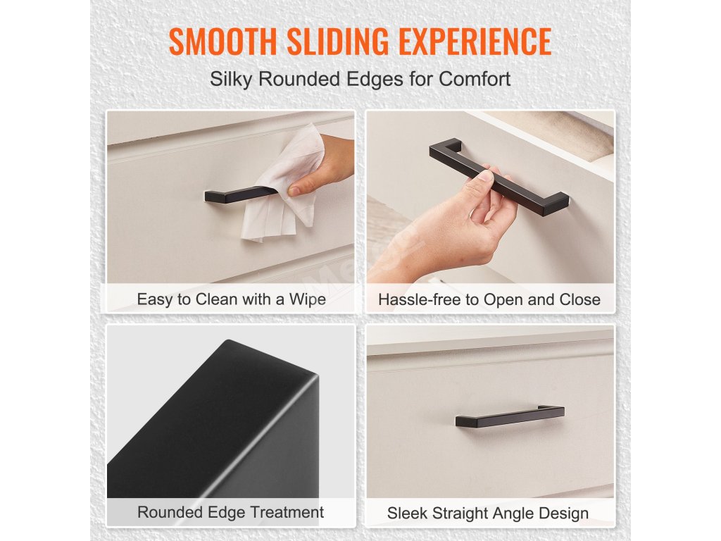 Sada skříňových úchytek VEVOR je vyrobena z odolné nerezové oceli, tento způsob montáže bez vrtání je vhodný pro začátečníky a zaručuje bezpečné uchycení. Je ideální pro kuchyňské skříňky, je to ideální volba pro renovaci vašeho nábytku.