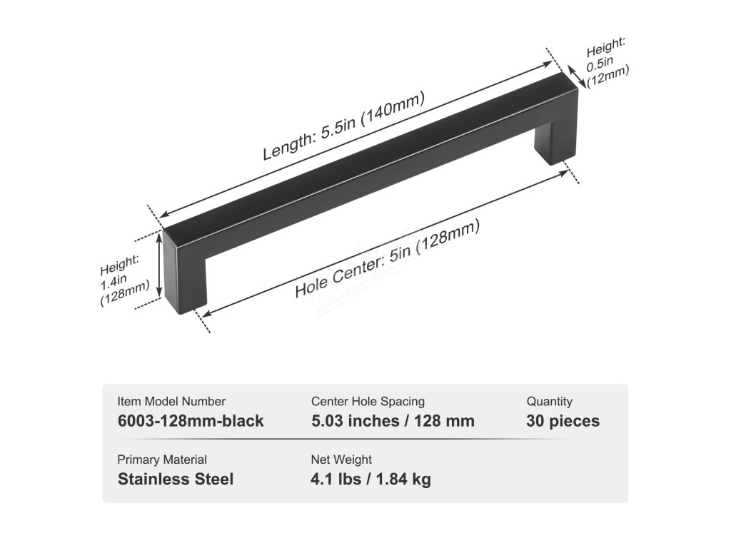 Sada 30 úchytek do skříní, rozteč 128 mm, nerez, matná černá