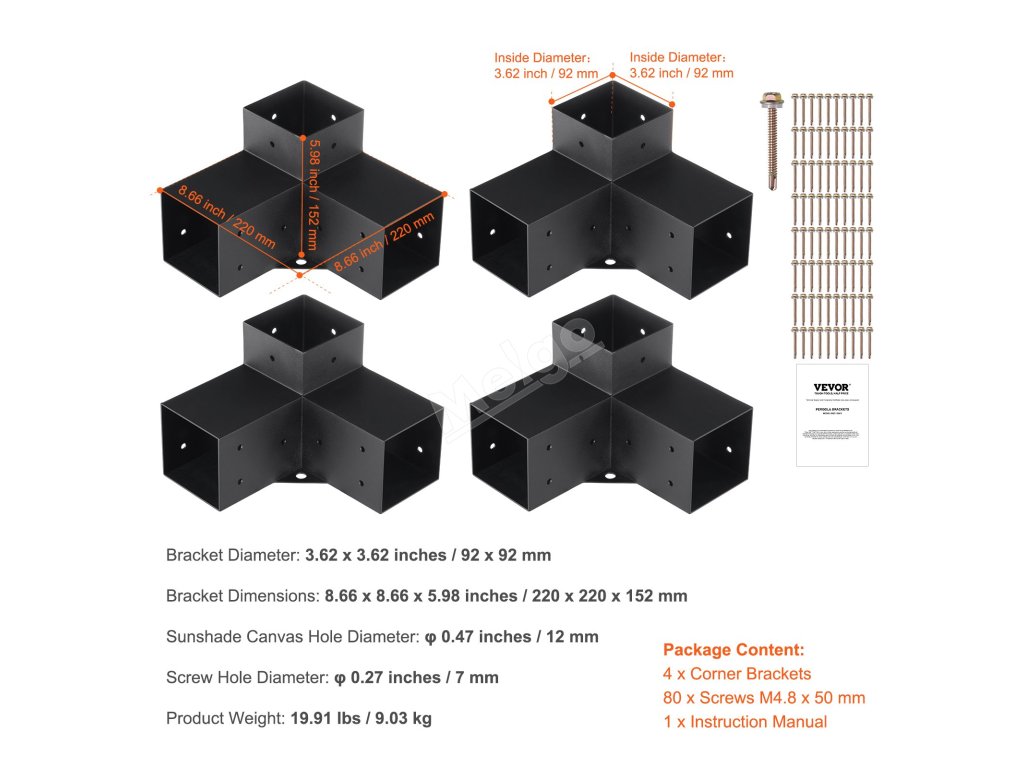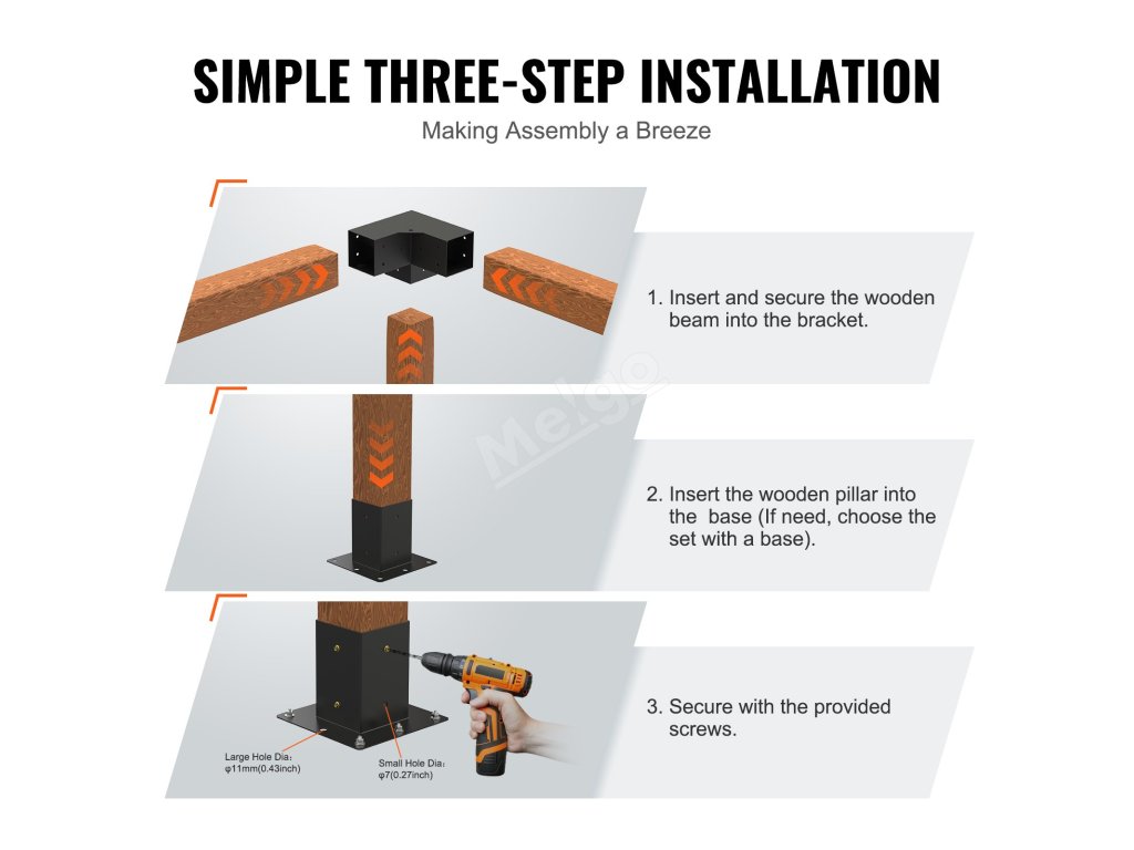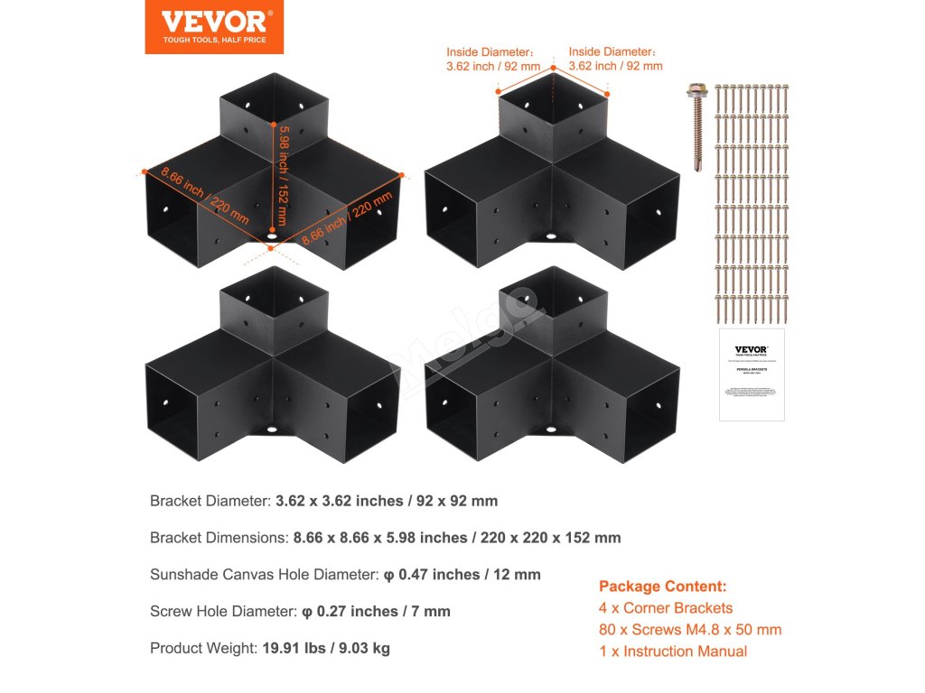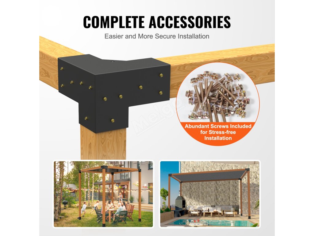 Naše konzoly jsou k dispozici v různých velikostech a specifikacích a jsou kompatibilní s různými standardními dřevěnými sloupky. Jsou vyrobeny ze silných plechů z uhlíkové oceli, svařeny pro větší odolnost a potaženy vrstvou, která odolává korozi a rzi. Vyberte si VEVOR pro bezpečné řešení.