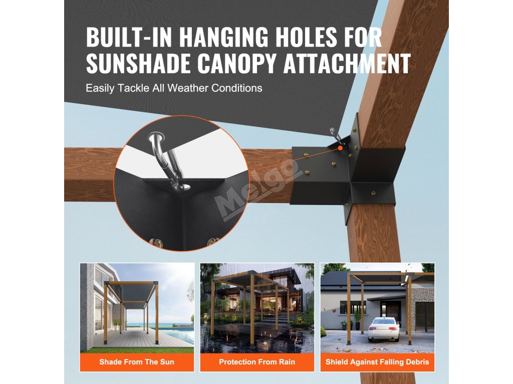 Tyto držáky jsou vybaveny otvory pro připevnění sluneční plachty a umožňují účinně blokovat sluneční světlo a chránit vaše věci před vlhkostí a poškozením. Konstrukce s otvory usnadňuje instalaci a demontáž plachty, což usnadňuje pravidelnou údržbu a čištění.