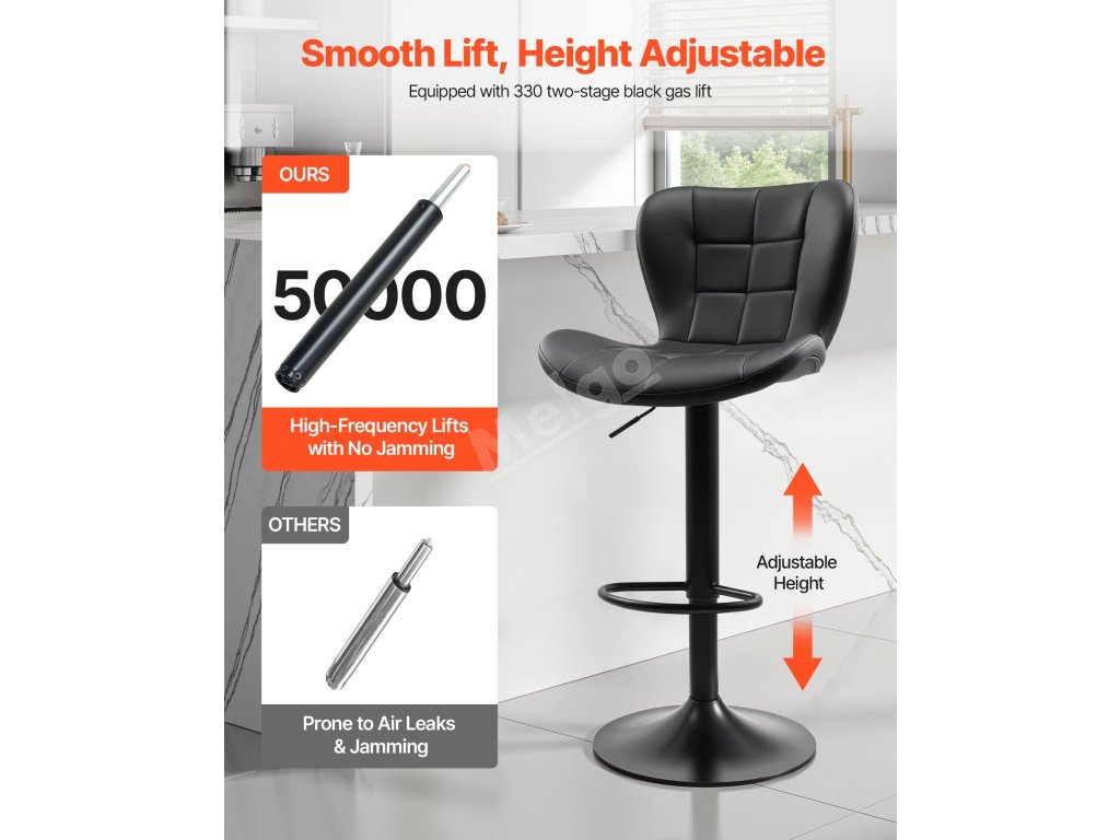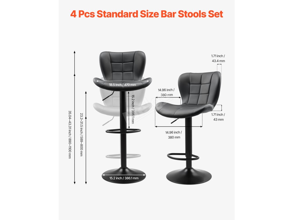 Pultová stolička má komerční černou PU kůži a opěradlo s uhlazeným tvarem, který kombinuje moderní a hřejivý styl. Bez námahy se začlení do různých stylů interiéru a pozvedne celkový dojem z prostoru.