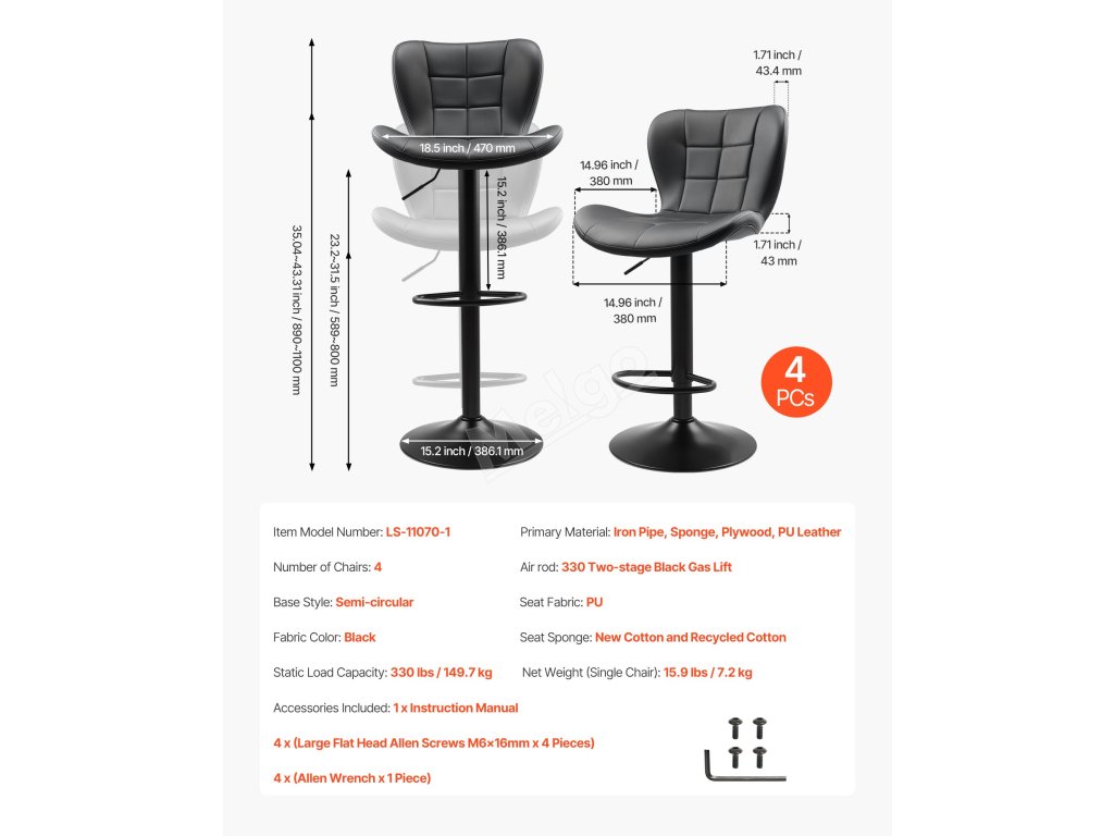 | Rozměry výrobku | 18.50x21,06x35,04/43,31 palců / 470x535x890/1100 mm |