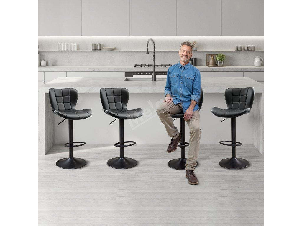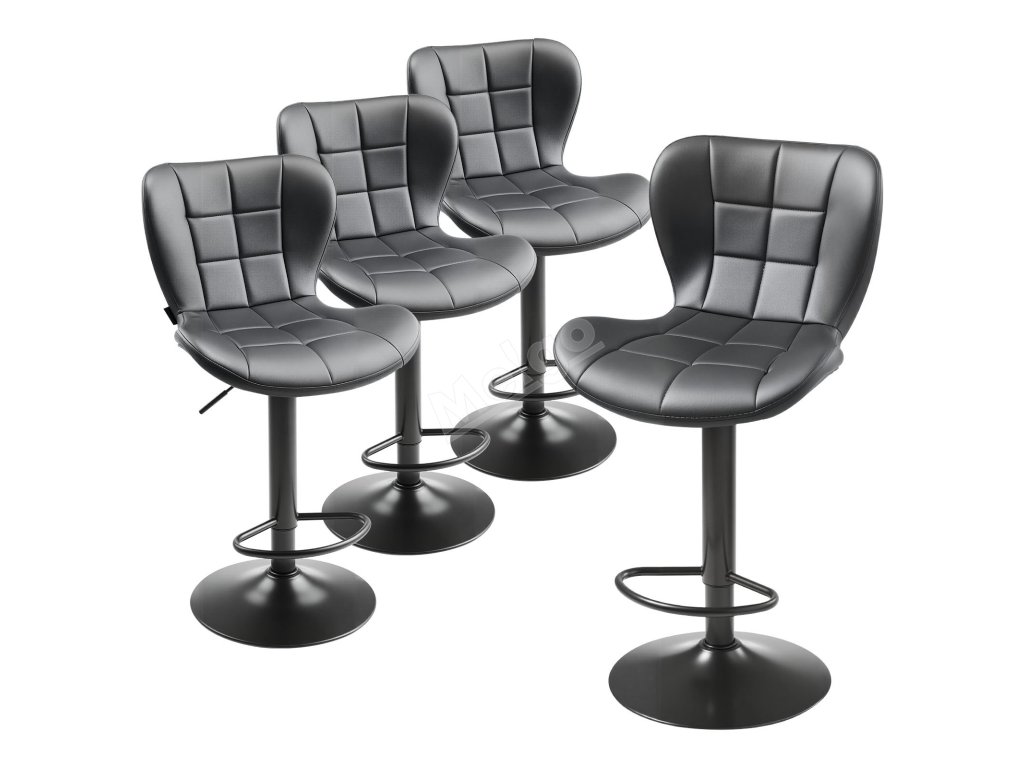 Sada 4 barových židlí, otáčecí, výškově nastavitelné, černé