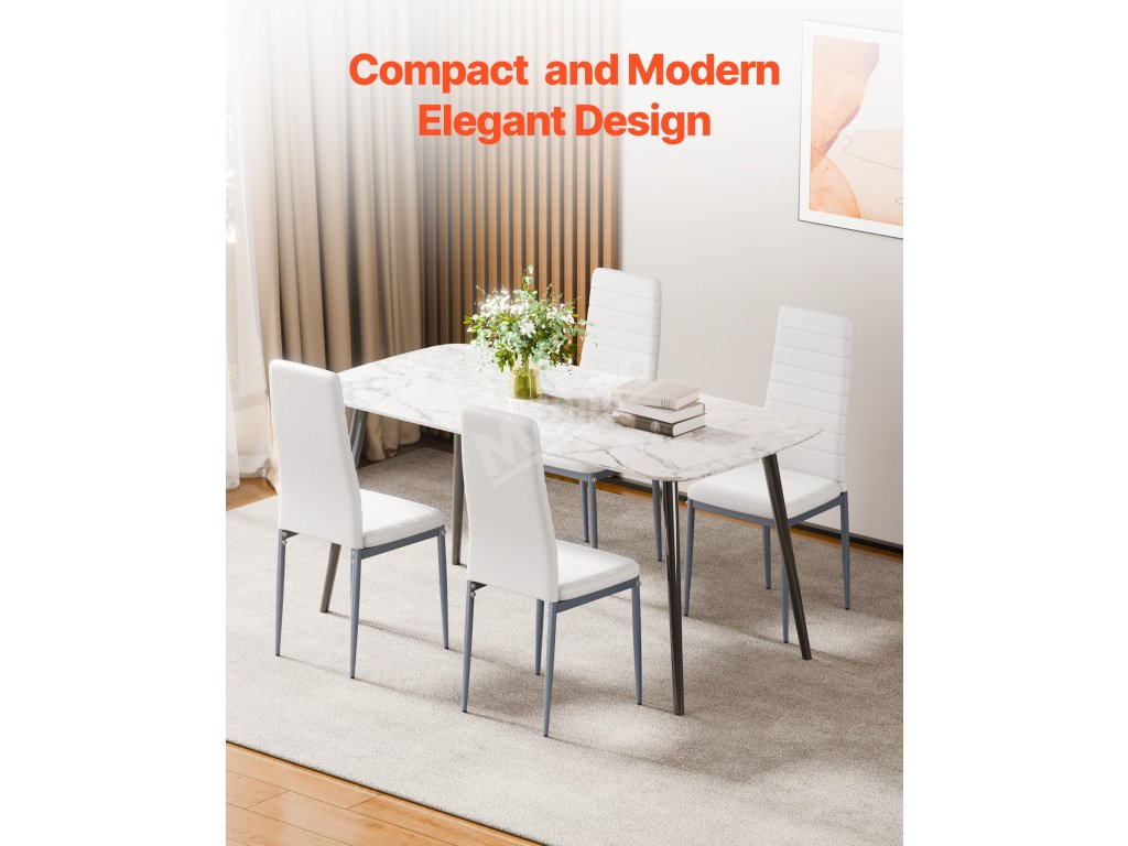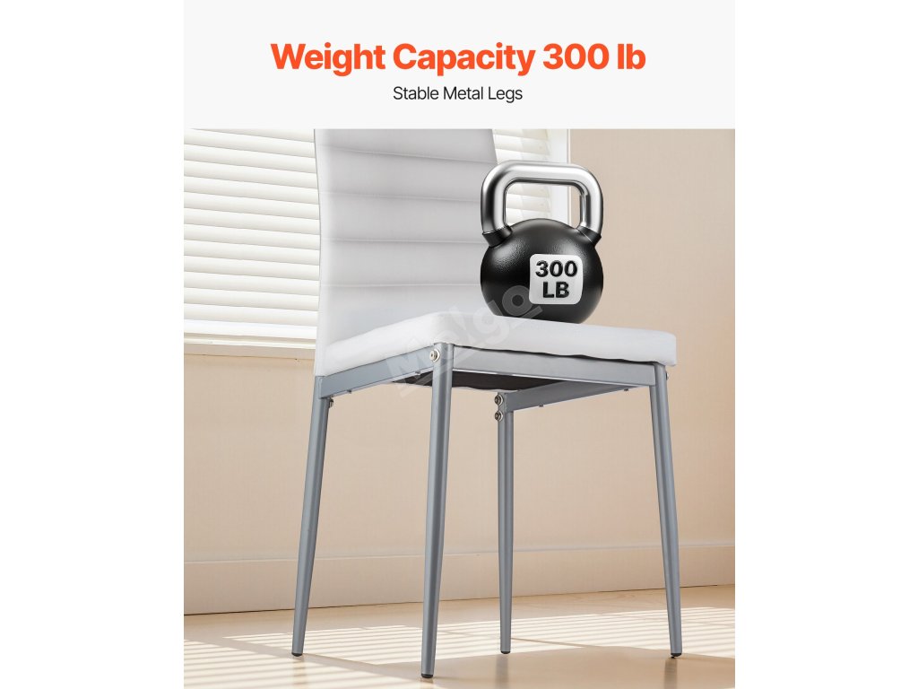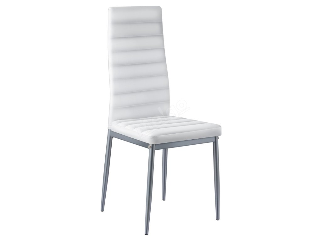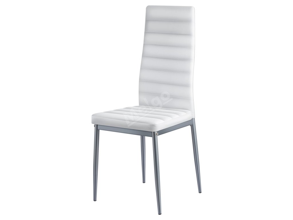 Sada 4 čalouněných jídelních židlí, koženka, kovové nohy, bílá