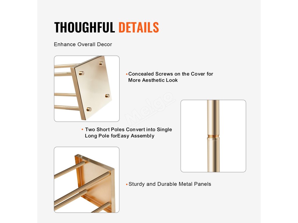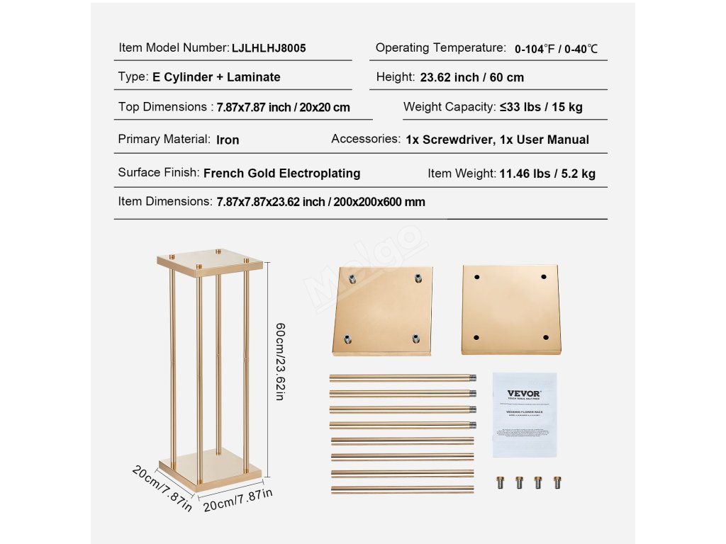 Stojan na svatební květiny VEVOR z vysoce kvalitního materiálu, odolný; instalace bez použití nářadí, mimo krabici. Každá křehká část má jemný vzhled a může na stojanu na květiny vytvářet jemné vzory nebo detaily, které svatebnímu stojanu na květiny dodají krásu a dekoraci.