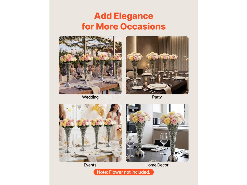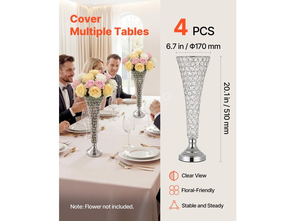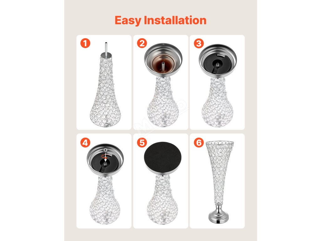 Díky předtvarované nebo šroubované konstrukci lze tuto konstrukci rychle sestavit bez použití nářadí. Tato svatební váza pomáhá udržovat elegantní vzhled.