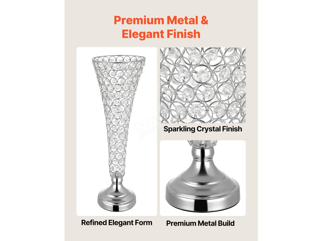 Tato kovová svatební váza je vyrobena z vysoce kvalitního kovu s propracovanými detaily, má stabilní a vyváženou konstrukci a elegantní strukturovaný povrch, který podtrhuje celkový vzhled stolu.