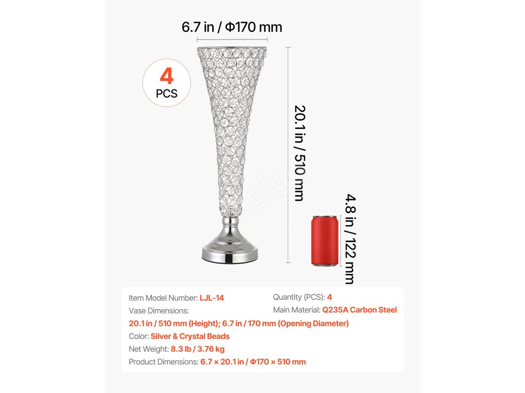 | Výška vázy | 20,1 palce / 510 mm |