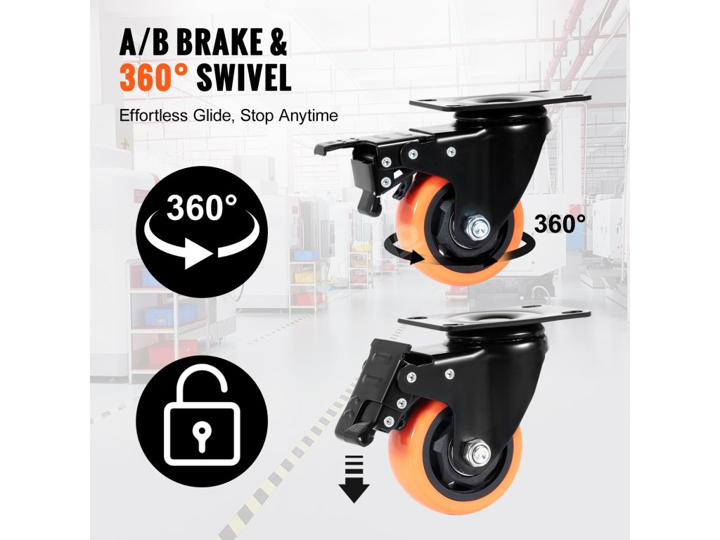 Kompaktní, ale výkonný! Naše průmyslová kolečka jsou ideální pro nesčetná prostředí - ať už jde o kanceláře, továrny nebo ateliéry. Nechte tato kolečka, ať se váš svět točí kolem!