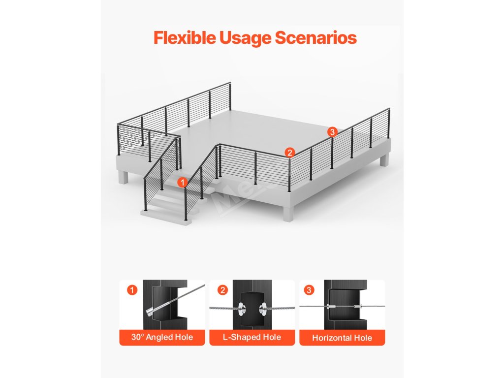 Objevte nový standard sloupků zábradlí! Náš sloupek kabelového zábradlí je vyroben z odolné nerezové oceli SUS304 a nabízí pevnost i styl. Snadno se instaluje díky předvrtaným otvorům a přiloženému příslušenství a je ideální pro zajištění palub, zábradlí a dalších prvků, přičemž splňuje všechny regulační požadavky.