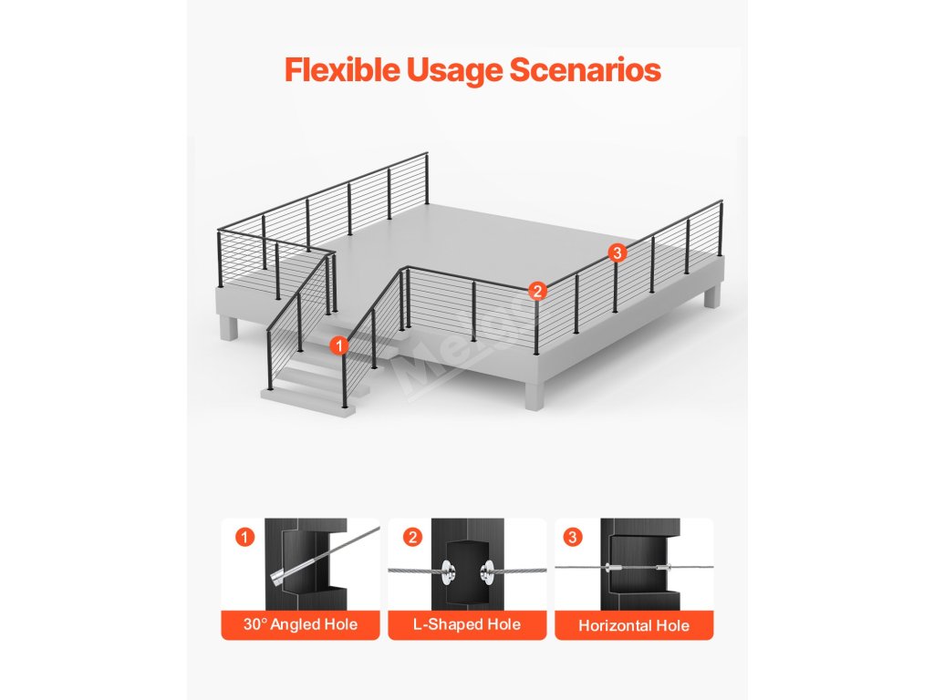 Objevte nový standard sloupků zábradlí! Náš sloupek kabelového zábradlí je vyroben z odolné nerezové oceli SUS304 a nabízí pevnost i styl. Snadno se instaluje díky předvrtaným otvorům a přiloženému příslušenství a je ideální pro zajištění palub, zábradlí a dalších prvků, přičemž splňuje všechny regulační požadavky.