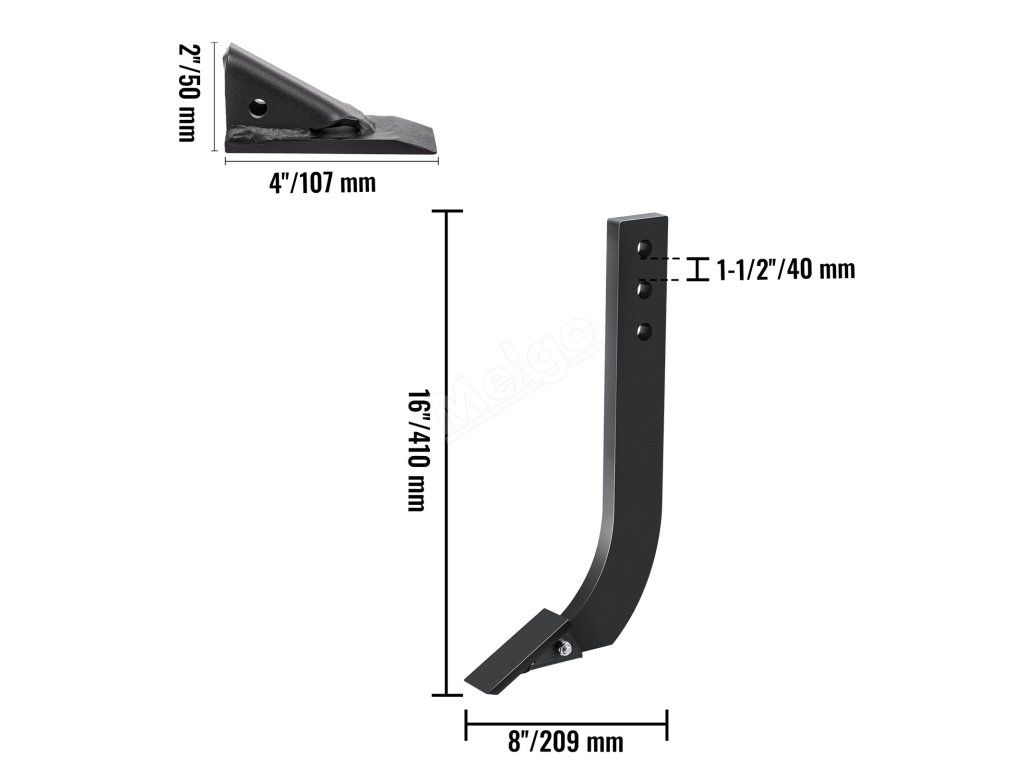 Poskytujeme dva vyměnitelné zuby pro snadné kopání. Zuby jsou vyrobeny z tepelně zpracované oceli s dlouhou životností pro dlouhodobé používání.