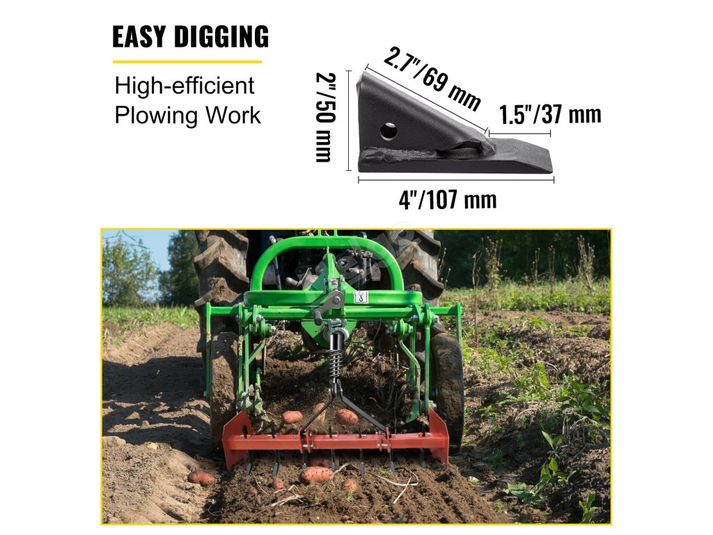 Poskytujeme dva vyměnitelné zuby pro snadné kopání. Zuby jsou vyrobeny z tepelně zpracované oceli s dlouhou životností pro dlouhodobé používání.