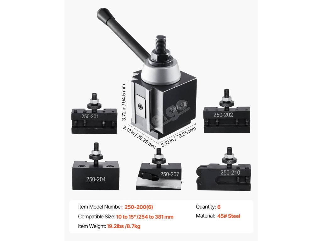 6dílná sada rychlovýměnných držáků nástrojů, vhodná pro soustruhy 10"-15"