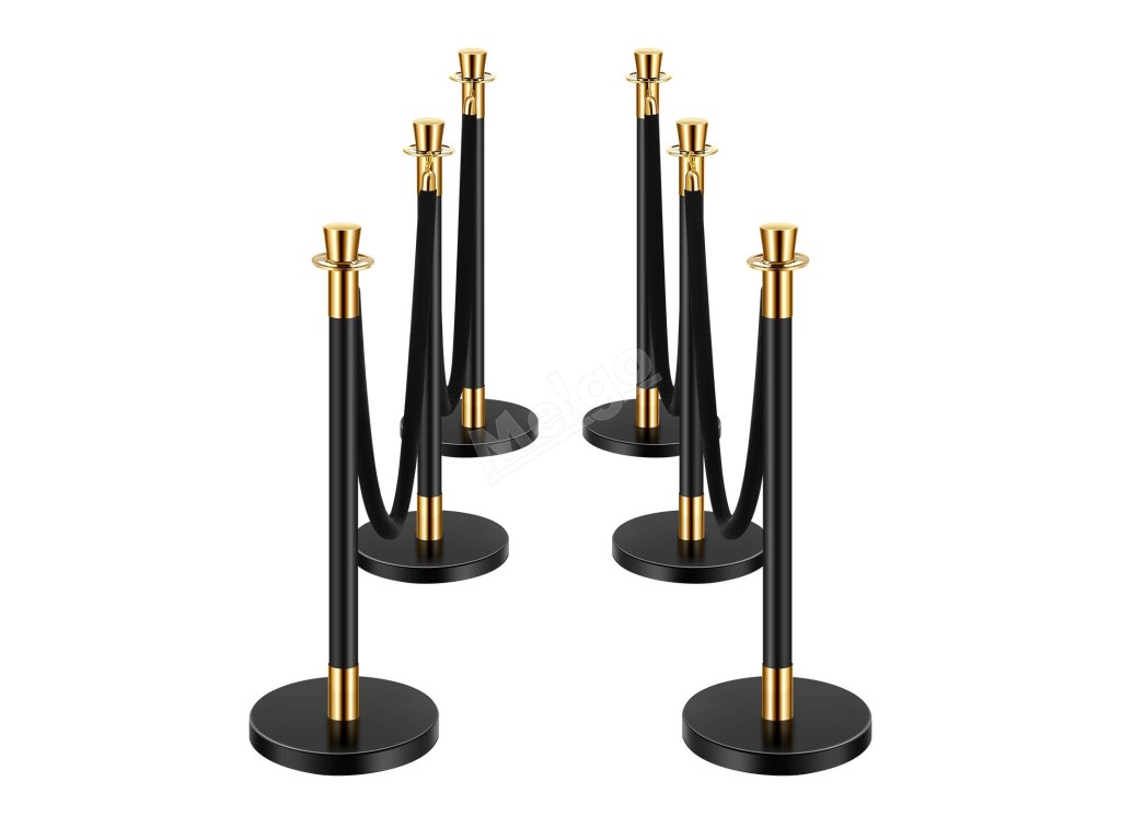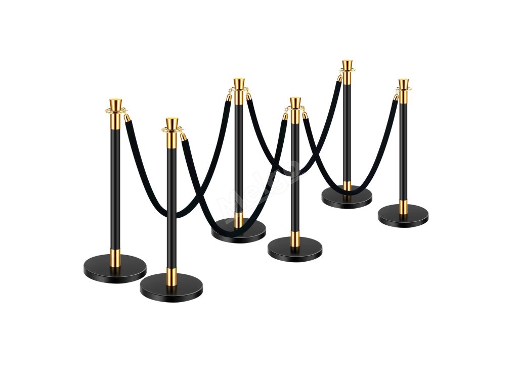 Sada 6 sloupků 4 černá sametová lana, 5 ft nerez sypaný podstavec