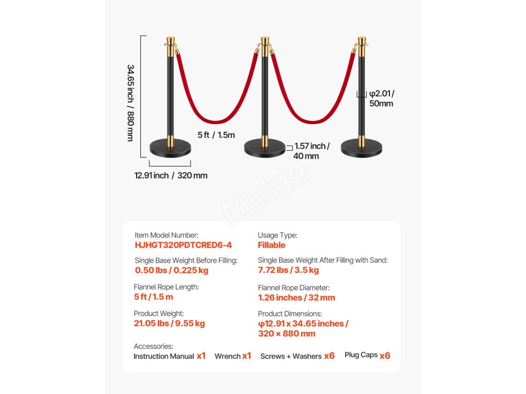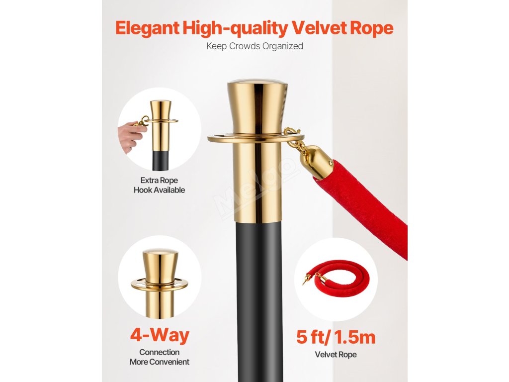 Každý sloupek je dodáván se sametovým lanem o délce 4,92 ft/1,5 m, takže si můžete snadno nastavit délku podle svých potřeb. Je to dokonalé řešení pro všechny vaše požadavky na řízení davu - rychle a snadno se přizpůsobí jakékoli akci.