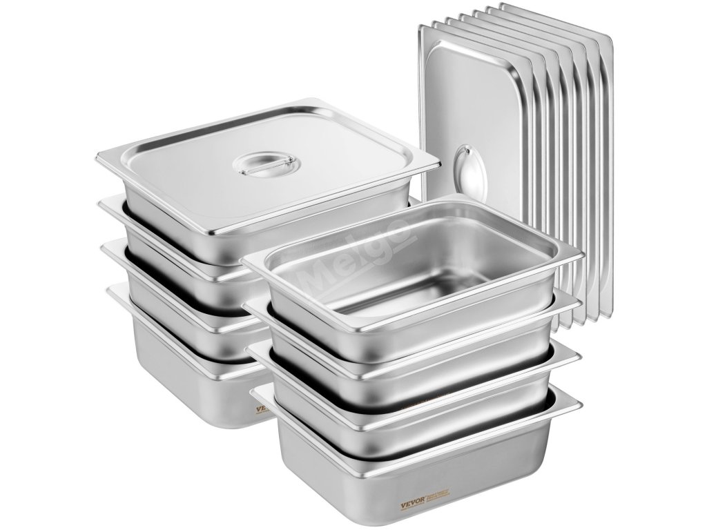 Sada 8 gastronádob 1/2, nerez 0.8mm, 4-inch hluboké, s víkem