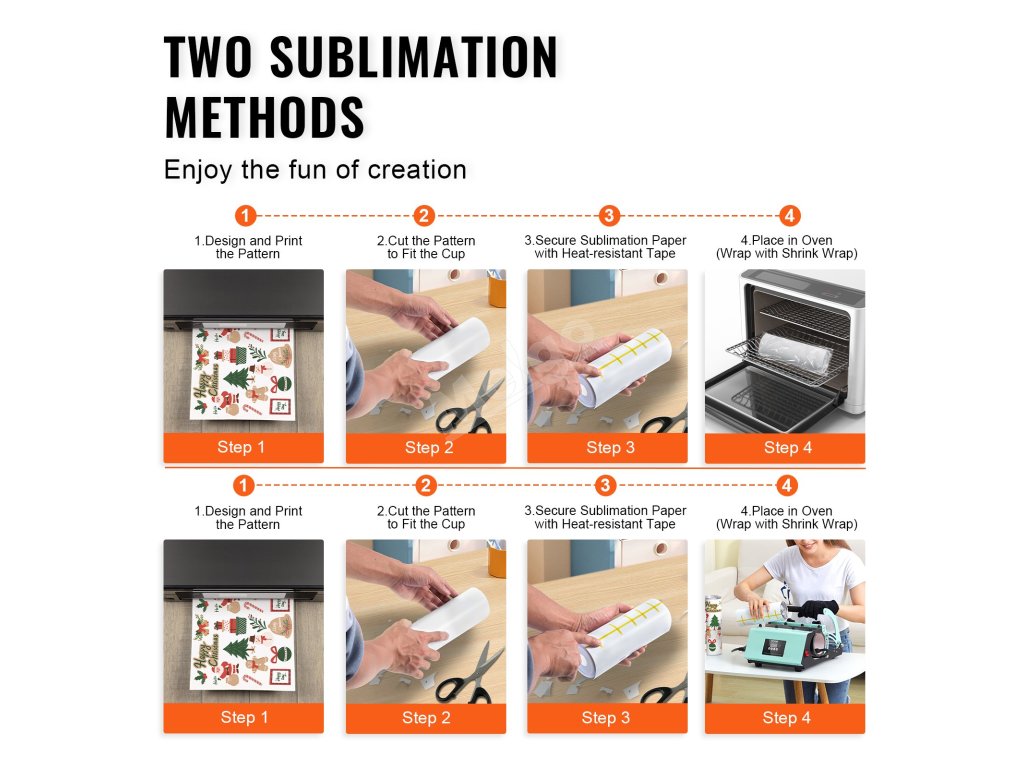 Stačí čtyři jednoduché kroky a můžete si bez námahy vytvořit jedinečný sublimační hrnek. Stačí jej vložit do trouby nebo sublimačního stroje a váš osobní sublimační hrnek je připraven k použití.