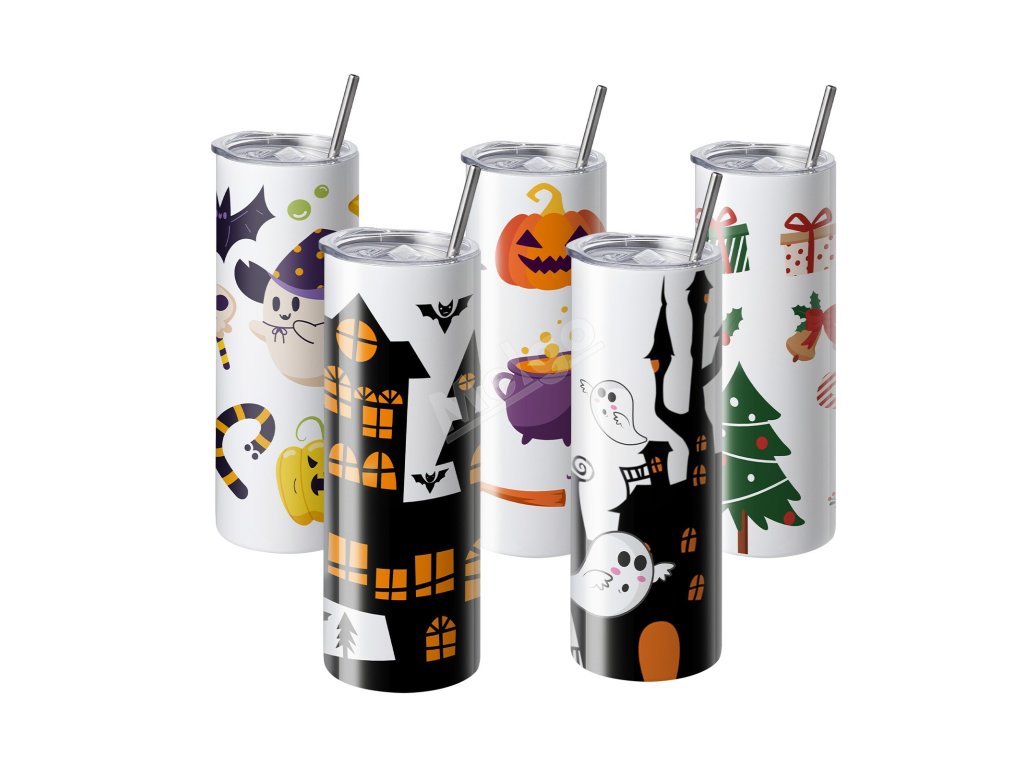 Sada 8 sublimačních sklenic 591.5 ml nerez dvoustěnné s brčkem