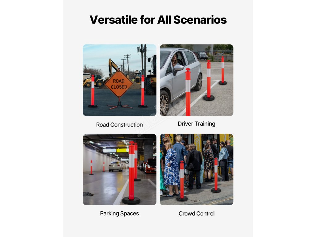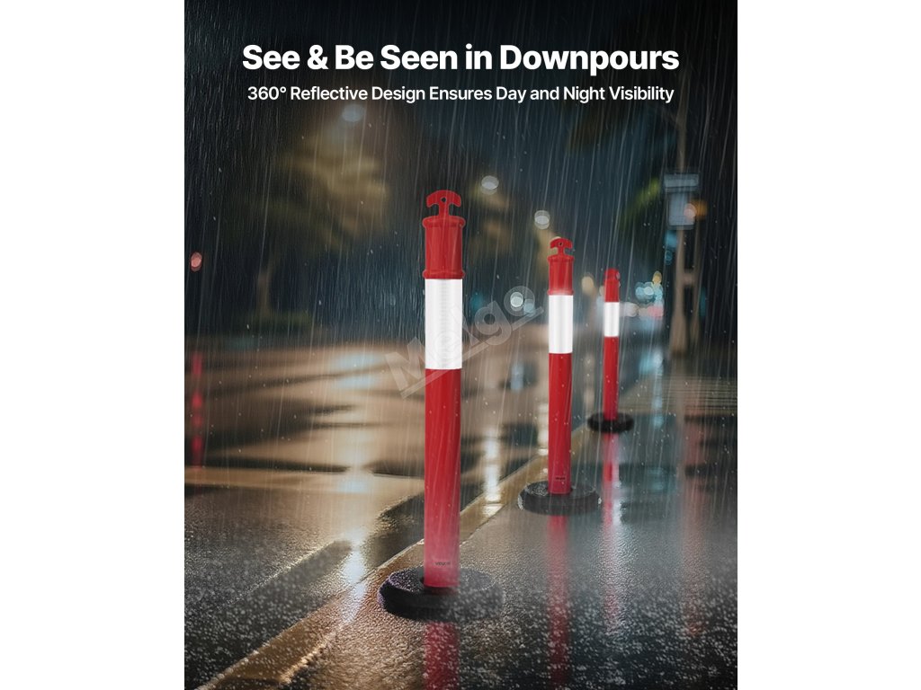 Sloupky se vyznačují jasnými barvami a designem s 360° reflexními proužky, které zajišťují větší bezpečnost při nočních výstrahách na silnicích. Jeho odnímatelná konstrukce umožňuje snadné uložení v zásahových vozidlech nebo hromadnou přepravu, takže je v případě potřeby snadno dostupný.