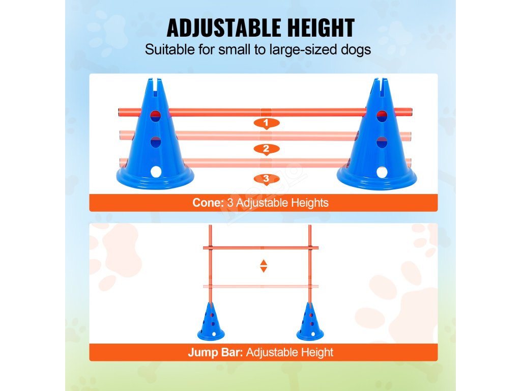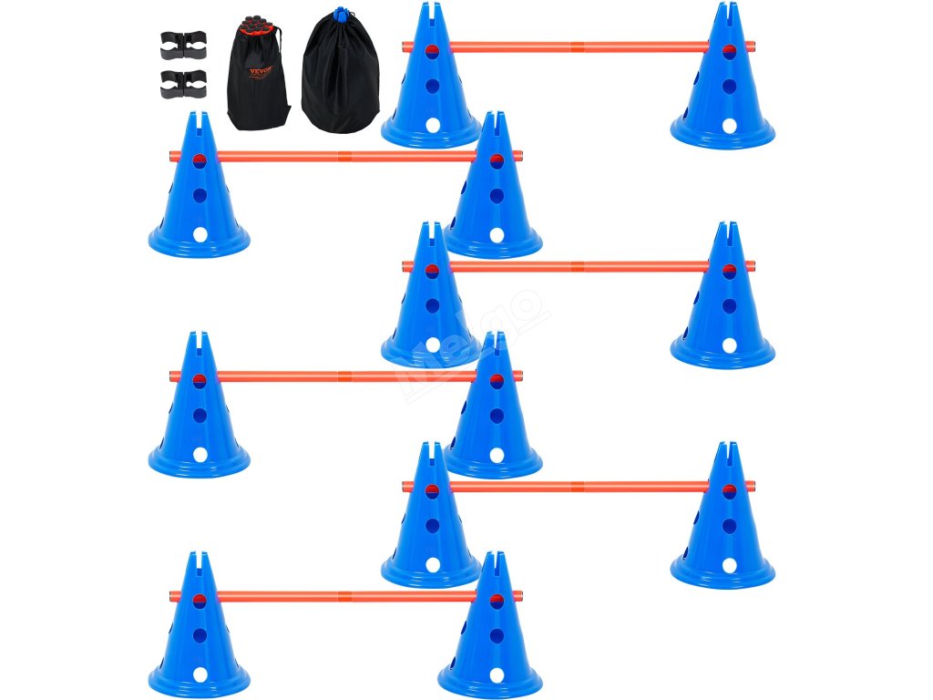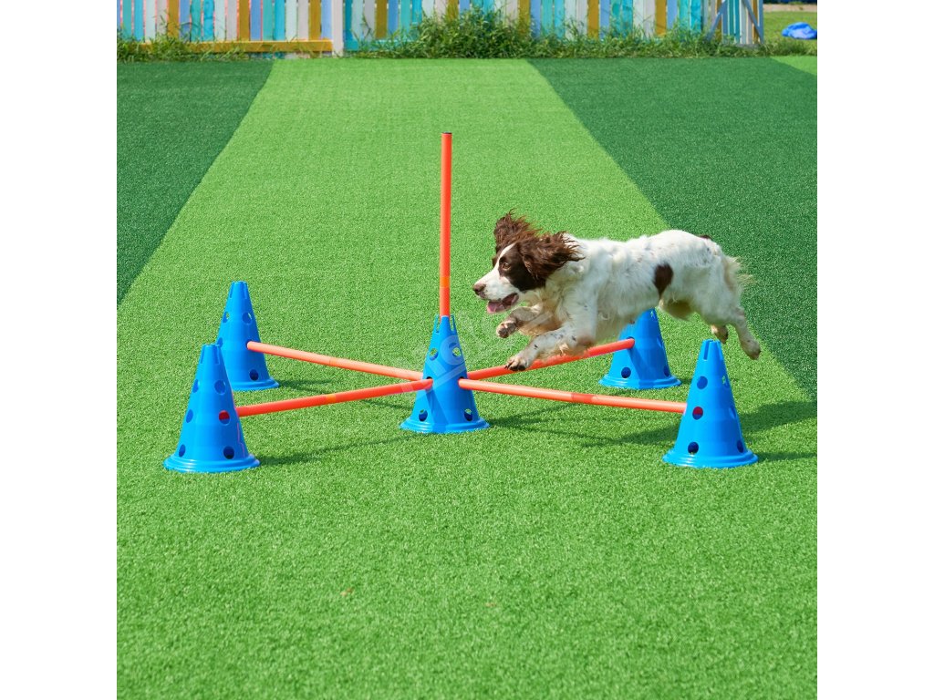 Sada agility pro psy: 12 kuželů, 6 tyčí, nastavitelná příčka