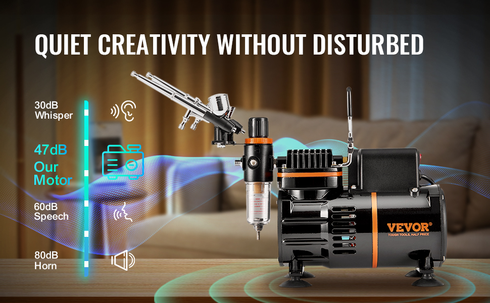 Kvalitní motor sady vzduchových kartáčů umožňuje stabilní provoz při nízké hlučnosti 47 dB. Můžete se soustředit na své výtvory v tišším a pohodlnějším pracovním prostředí, což zefektivní vaši práci.