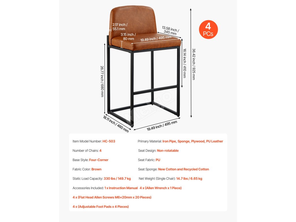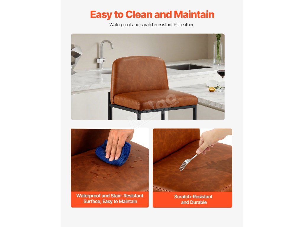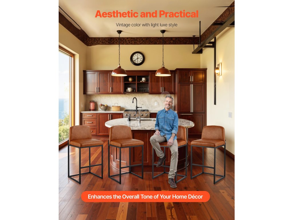 Pultová stolička má vintage PU kůži a opěradlo racionálního tvaru, které kombinuje moderní a hřejivý styl. Bez námahy se začlení do různých stylů interiéru a pozvedne celkový dojem z prostoru.