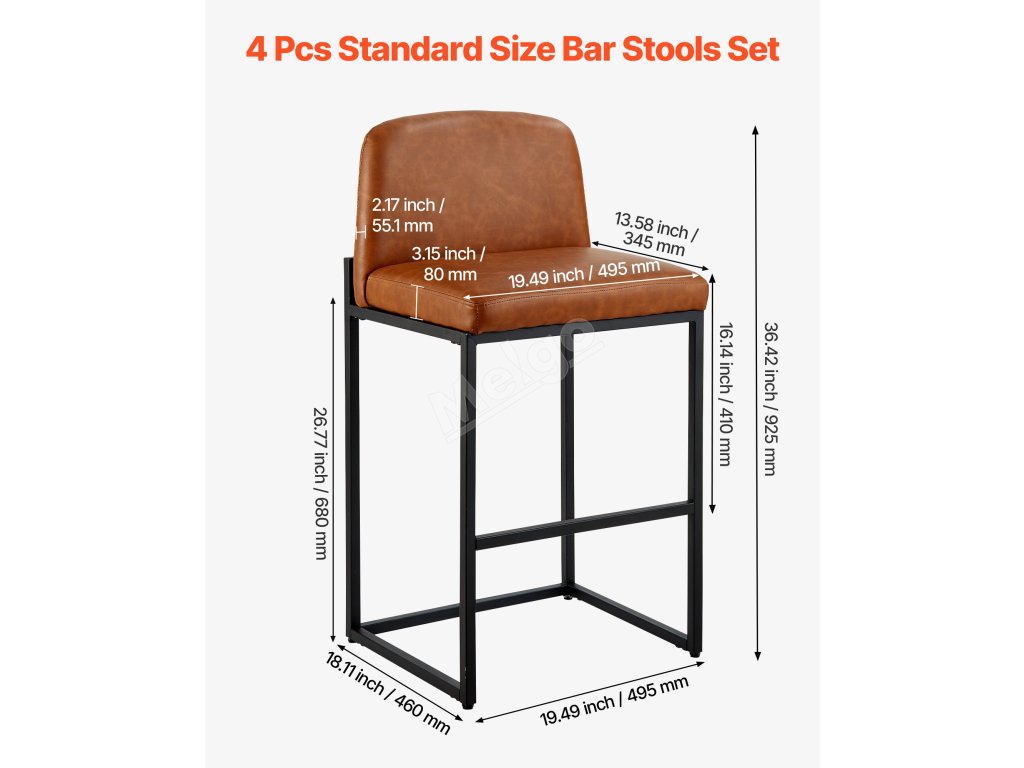 Díky zesíleným železným trubkám a stabilní čtyřúhelníkové konstrukci nabízí tato barová stolička výjimečnou oporu kuchyňské linky, která zabraňuje viklání nebo prohýbání. Je opatřena antikorozním nástřikem, který zajišťuje větší stabilitu a odolnost.