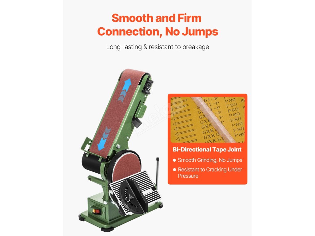 Naše pásové brusné pásy mají pevnou látkovou podložku, která zajišťuje dlouhou životnost a odolnost proti opotřebení. Obousměrný kloub pásu zajišťuje pevné spojení odolné proti roztržení a poskytuje hladký chod bez odskoků během používání.