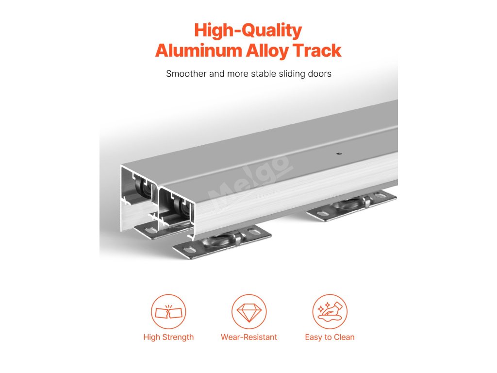 Tato sada kování pro obchozí dveře, která se skládá z vysoce kvalitních hliníkových kolejnic a tříkolového systému, zajišťuje hladké a stabilní posouvání. Je vhodná do různých interiérů, jako jsou obývací pokoje, kuchyně, ložnice a koupelny.