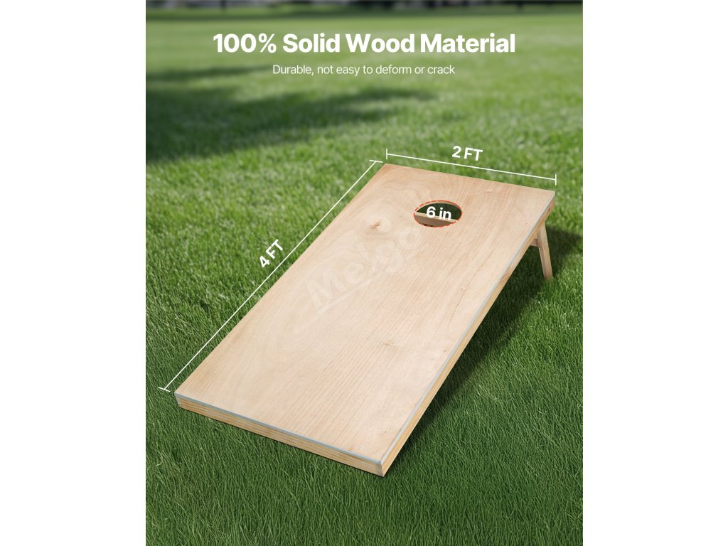 Sada na hraní kukuřičného dolu má rám a horní desku z masivního dřeva, které jsou spojeny zkosenými spoji a odolným kováním, takže hrací deska je trvanlivá a odolná proti deformacím nebo praskání.