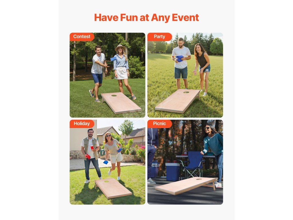 Sada cornhole 4×2 ft, masivní dřevěná prkna, přenosná s obalem