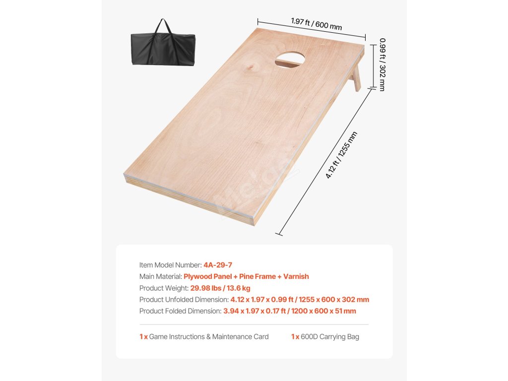 Skládací konstrukce umožňuje snadné sestavení nebo složení pro uskladnění. Hrací deska na cornhole se dodává s taškou 420D pro pohodlné skladování, která pomáhá šetřit místo.