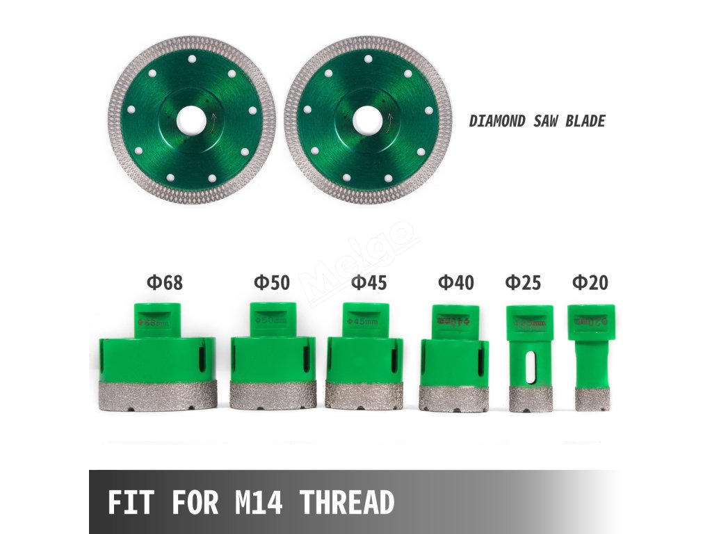 Sada diamantových korunek M14 20/25/40/45/50/68 mm, 6 ks, 2 listy