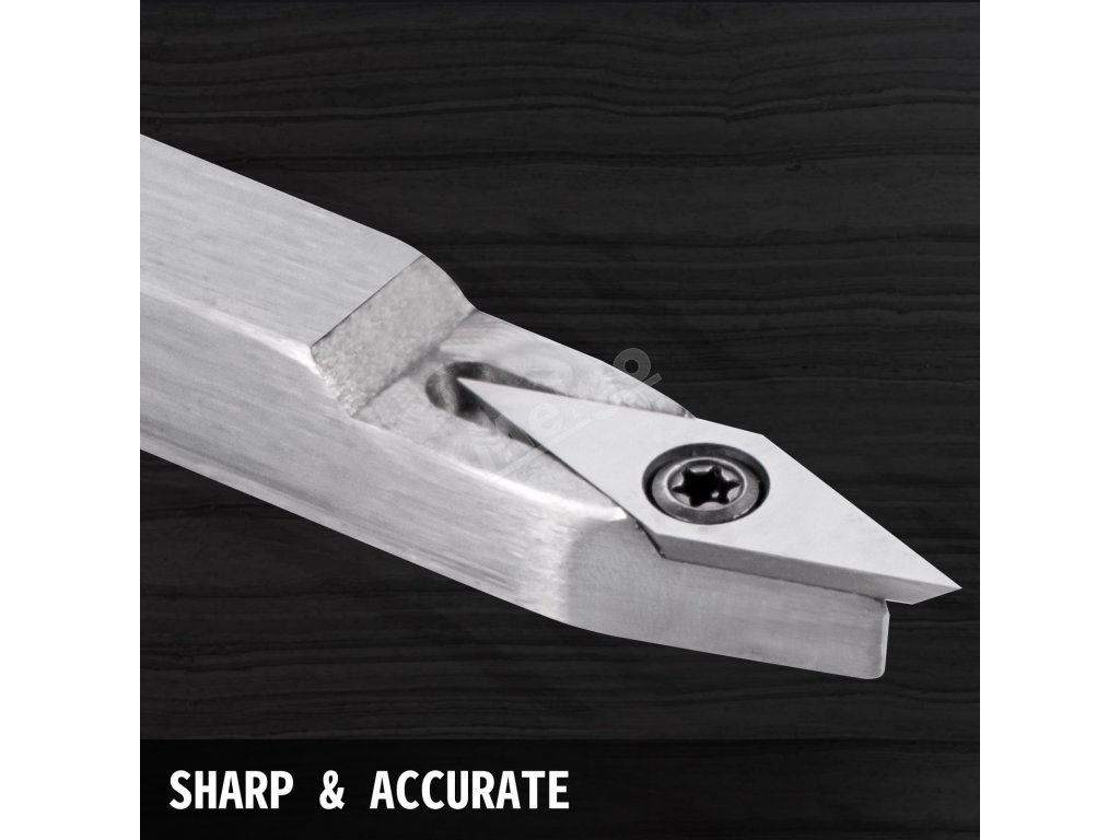 Sada dlát pro soustružení dřeva vyniká snadným použitím. Pomocí klíče (je součástí dodávky) povolte matici a poté otočte ostřím na ostřejší povrch nebo ostří vyměňte.